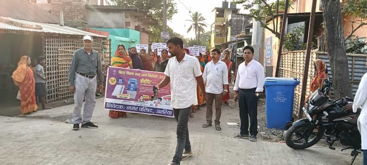 अररिया.अररिया नप इओ चंद्रराज प्रकाश के आदेश पर अररिया आरएस में मतदाता जागरूकता अभियान चलाया गया. जिसमें अररिया आरएस वार्ड संख्या 01 में रैली का आयोजन किया गया. खुशी महिला स्वावलंबी सहकारी समिति व रूपा महिला स्वावलंबी सहकारी समिति के सदस्यों के द्वारा नगर मिशन प्रबंधक नीरज कुमार के नेतृत्व में रैली आयोजित किया गया है. मतदाता जागरूकता की रैली वार्ड संख्या 01 से निकलकर वार्ड संख्या 02 के सभी मुहल्ले भ्रमण किया गया. मतदाताओं को निर्भीक व निडर होकर मतदान करने के लिए जागरूक किया. रैली में सीआरपी प्रियंका, नूतन, प्रीति, नगर प्रबंधक व अन्य कर्मी मौजूद थे.