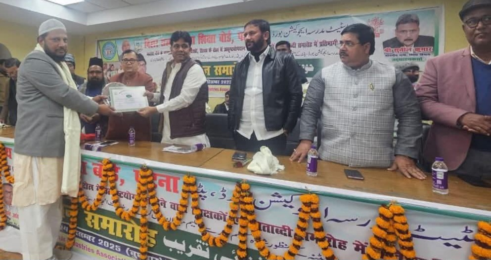 मौलाना शाहिद आदिल को मदरसा बोर्ड पटना ने किया सम्मानित