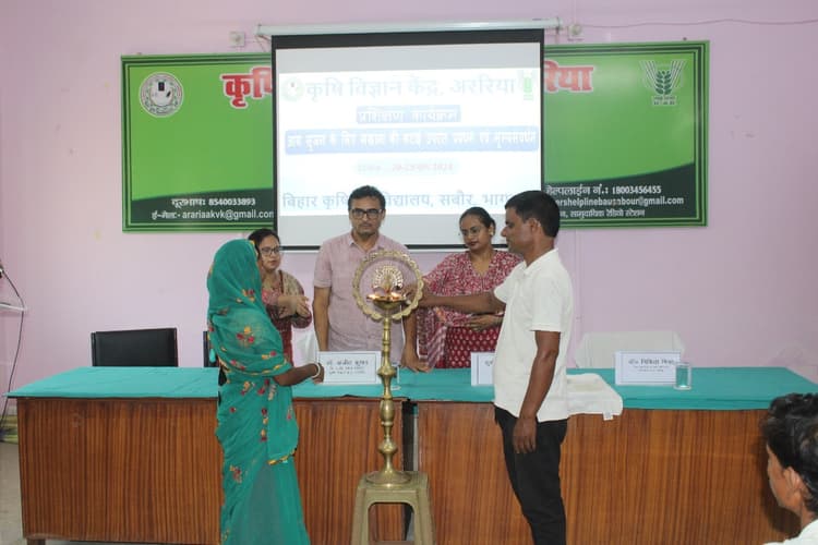 प्रतिनिधि, अररियाकृषि विज्ञान केंद्र अररिया में छह दिवसीय मखाना के प्रसंस्करण की तकनीक व उससे बने उत्पाद पर प्रशिक्षण दिया गया. इस कार्यक्रम का समापन वरीय वैज्ञानिक सह प्रधान डॉ विनोद कुमार, पौधा संरक्षण विषय वस्तु विशेषज्ञ डॉ संजीत कुमार, कृषि अभियंत्रण विषय वस्तु विशेषज्ञ डॉ निकिता मिश्रा द्वारा प्रमाण-पत्र देकर किया गया. समापन सत्र में केंद्र के प्रधान द्वारा मखाना के वर्तमान परिदृश्य में महत्व व वैश्विक स्तर पर इसकी मांग की पूर्ति के बारे में जानकारी दी गयी. उन्होंने बताया कि कैसे किसान मखाना का प्रसंस्करण कर मुनाफा कमा रहे हैं. अररिया क्षेत्र में मखाना की खेती की अपार संभावना है. यह आय सृजन के लिए एक अच्छा जरिया है. मुख्य प्रशिक्षक डॉ निकिता मिश्रा जो कृषि अभियंत्रण की विशेषज्ञ हैं. उन्होंने मखाना के प्रसंस्करण में उपयोग होने वाले आधुनिक मशीन जैसे पॉपिंग मशीन, क्लीनिंग मशीन, भूनने की मशीन की उपयोगिता व क्रियान्वयन की जानकारी दी. इस क्रम में उन्होंने यह भी बताया कि कैसे हम मखाना के विभिन्न उत्पाद जैसे मखाना खीर मिक्स, मखाना लड्डू, मसाला मखाना व कैरेमलाइज्ड मखाना इत्यादि उत्पाद बनाकर इसकी आकर्षक पैकेजिंग कर बाजार में बेचकर आय सृजित कर सकते हैं. प्रशिक्षण के दौरान उन्होंने मखाना के मूल्य संबंधित उत्पादों को बनाने की विधि का भी प्रशिक्षण दिया. इस प्रशिक्षण में कुल 40 प्रशिक्षणार्थियों को प्रमाण-पत्र देखकर सम्मानित किया गया.एनएच पर ट्रक पलटा, चालक व खलासी घायल