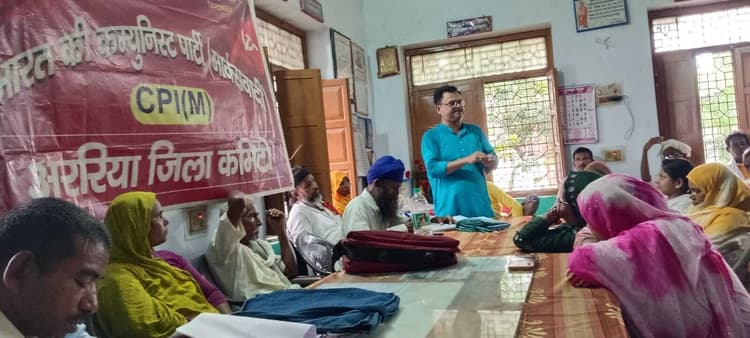 मतदाता सूची गहन पुनरीक्षण भाजपा समर्थित चुनाव आयोग का है एजेंडा अररिया. भाकपा सीपीएम जिला कमेटी अररिया की जीबी बैठक साथी श्यामदेव राय की अध्यक्षता में पेंशनर समाज भवन कचहरी परिसर में हुई. बैठक में शोक प्रस्ताव पर एक मिनट मौन रख कर दिवंगत साथियों को श्रद्धांजलि अर्पित की गयी. इसके बाद पूरे बिहार व जिले में चल रहे मतदाता गणना पुनरीक्षण को लेकर आगामी 09 जुलाई को अखिल भारतीय संयुक्त किसान संगठनों व अखिल भारतीय संयुक्त श्रमिक संगठन द्वारा केंद्रीय सरकार के जनविरोधी नीतियों के खिलाफ प्रस्तावित आम हड़ताल, खेत मजदूर यूनियन व किसान सभा का जिला सम्मेलन सहित अन्य प्रमुख प्रस्ताव लाया गया. बैठक में पार्टी जिला सचिव कॉमरेड राम विनय राय ने गत दिनों हुए पार्टी कार्य पर कार्य प्रतिवेदन प्रस्तुत किया. जिसे सर्वसम्मति से पारित किया गया. जिला सचिव कॉमरेड राम विनय राय ने बैठक को संबोधित करते हुए कहा कि यह मतदाता सूची गहन पुनरीक्षण का कार्य भाजपा समर्थित चुनाव आयोग के माध्यम से मोदी सरकार बिहार में एनआरसी लागू करना चाहती है. बैठक में सर्वसम्मति से निर्णय लिया गया कि यह मतदाता सूची गहन पुनरीक्षण कार्य का मजबूती से विरोध करना है व इस मतदाता सूची पुनरीक्षण कार्य में पार्टी के द्वारा जिला के सभी साथियों के मदद करने का निर्णय लिया गया. आगामी 09 जुलाई का प्रस्तावित कार्यक्रम को सफल बनाने के लिए जिला के सभी प्रखंड क्षेत्रों में 2500 साथियों व आम आदमी को शामिल करने का निर्णय लिया गया. वहीं खेत मजदूर यूनियन का जिला कन्वेंशन कार्यक्रम 15 से 20 जुलाई तक पुरा कर लेने का निर्णय लिया गया. इस मौके पर बैठक में हलीमा खातुन, चंदर ऋषिदेव, सावो खातुन, जमाल, राजकिशोर मांझी, धर्मनाथ मंडल, सीता देवी, अनीता देवी, नगीना खातुन, सुमित्रा देवी, रतन सिंह, हरिलाल सिंह, नाहीद खातुन, प्रविणा खातून, रुकसार, फुल बानो, नुजहत बानो, चंद्रशेखर पासवान, अजीत पासवान, विजय शर्मा, सोनेलाल पासवान, हरिनारायण ऋषिदेव, अनीता दीदी सहित अन्य प्रमुख साथियों ने भाग लिया.42