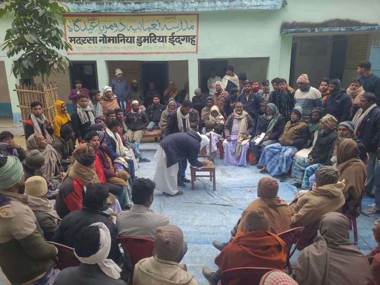 मदरसा में पठन-पाठन को व्यवस्थित करने के लिए अभिभावकों का सहयोग जरूरी जोकीहाट. प्रखंड क्षेत्र के मदरसा नोमानिया डुमरिया ईदगाह मदरसा संख्या 384 पंचायत प्रसादपुर डुमरिया में सोमवार को मदरसा कमेटी गठन को लेकर एक बैठक की गयी. इसकी अध्यक्षता हेड मौलवी फिरोज आलम ने की. उन्होंने कहा कि बैठक बिहार मदरसा बोर्ड के निर्देश पर बुलायी गयी है. जिसका मकसद मदरसा की नयी प्रबंधन कमेटी का गठन करना है. बैठक की शुरुआत से ही माहौल तनावपूर्ण रहा. कमेटी गठन को लेकर दो पक्षों के बीच लंबे समय से चली आ रही खींचतान के कारण कुछ देर के लिए हंगामा भी हुआ. आरोप है कि कुछ असामाजिक तत्व बैठक को भंग कर कमेटी गठन को विफल करना चाहते थे. लेकिन पोषक क्षेत्र के आमजनों व अभिभावकों की समझदारी से स्थिति को संभाल लिया गया. हेड मौलवी फिरोज आलम ने स्पष्ट किया कि पूर्व कमेटी का कार्यकाल वर्ष 2024 में ही समाप्त हो चुका है. ऐसे में बिहार मदरसा बोर्ड के दिशानिर्देश के अनुसार नयी कमेटी का गठन जरूरी हो गया था. उन्होंने कहा कि इस संबंध में विधिवत आवेदन मदरसा बोर्ड को सौंप दिया गया है. बैठक में मदरसा परिसर के साथ-साथ आसपास के इलाकों के लोगों को भी आमंत्रित किया गया था. मस्जिदों में इश्तेहार लगाकर बैठक में आने का निमंत्रण दिया था. ताकि पारदर्शिता बनी रहे. नयी कमेटी के गठन के बाद हेड मौलवी फिरोज आलम ने कहा कि मदरसा में पठन-पाठन को नियमित व व्यवस्थित करने के लिए अभिभावकों का सहयोग बेहद जरूरी है. वहीं कुछ अभिभावकों ने पुरानी कमेटी पर गंभीर आरोप लगाते हुए बताया कि बच्चों के एडमिट कार्ड सहित परीक्षा में पैसे लिए जाते हैं जो गरीब परिवारों के लिए बोझ साबित हो रहा था. बैठक में सर्वसम्मति से छह सदस्यों की नयी कमेटी का चयन किया गया. नयी कमेटी में अब्दुल कुद्दुस, मोजफ्फर आलम, अब्दुर रऊफ, डॉ अब्दुरर्रब उर्फ यारब, मो. परवेज आलम, मो साकिब आलम को सदस्य चुना गया. प्रधान मौलवी ने बताया कि अध्यक्ष व सचिव चयन को लेकर जल्द ही तिथि तय की जाएगी. मौके पर मो अनवर आलम, मो. आरिफ, मो यासीन एहतेशाम, हाजी मुन्ना, सरवर आलम, मास्टर अब्बास, हबीब नदफ, रमजान, अरशद, राशिद आलम, तारीख अनवर, जुबेर, शाहिद, नजीमुद्दीन, हाजी मंजूर, नजमुद्दीन, करीम, फारूक सहित दर्जनों लोग उपस्थित थे.