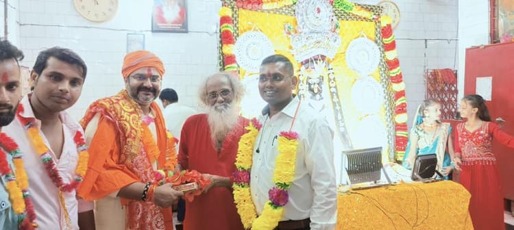 पड़ोसी राष्ट्र नेपाल समेत अन्य राज्यों से दर्शन के लिए आते हैं भक्त फोटो:32-मां खड्गेश्वरी काली मंदिर में नानू बाबा के साथ अभिनव आलोक उर्फ किमी आनंद सहित अन्य.मृगेंद्र मणि सिंह, अररिया