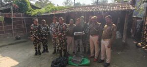 बथनाहा. बथनाहा थाना क्षेत्र के भारत-नेपाल सीमा से सटे पथरदेवा गांव के पास शुक्रवार को एसएसबी व बथनाहा पुलिस ने एक घर में संयुक्त रूप से छापामारी कर 09 किलो गांजा के साथ एक व्यक्ति को गिरफ्तार किया है. यह कार्रवाई गुप्त सूचना के आधार पर पथरदेवा गांव के विजय दास पिता महेंद्र दास के घर से की गयी है. इस बाबत पथरदेवा एसएसबी बीओपी प्रभारी उपनिरीक्षक सूरत सिंह चौहान ने कहा कि सूचना मिली कि सीमा पिलर संख्या-186 के समीप से नेपाल के तरफ से भारतीय साइड में संदिग्ध अवस्था में व्यक्ति के द्वारा बोरे में लेकर एक घर में गया है. सूचना मिलते ही टीम गठित कर स्थल पर पहुंच कर घर का घेराबंदी कर बथनाहा पुलिस को बुलाकर उक्त व्यक्ति के घर संयुक्त छापामारी कर 09 किलो गांजा के साथ विजय कुमार दास को गिरफ्तार कर लिया. कागजी कार्रवाई के बाद बथनाहा पुलिस को सुपुर्द कर दिया गया.