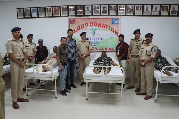 अररिया. शहीद दिवस के अवसर पर एसएसबी 52 वीं वाहिनी व अररिया द्वारा सदर अस्पताल अररिया के साथ मिलकर रक्तदान शिविर का आयोजन किया गया. इस अवसर पर एसएसबी के कुल 25 जवानों ने रक्तदान कर मानवता की सेवा में महत्वपूर्ण योगदान दिया. कार्यक्रम के दौरान द्वितीय कमान अधिकारी पीएन सिंह ने बताया कि रक्तदान एक महान मानवीय सेवा है. जिससे कई लोगों का जीवन बचाया जा सकता है. इस रक्तदान शिविर का उद्देश्य समाज में रक्तदान के प्रति जागरूकता फैलाना व जरूरतमंदों को समय पर रक्त उपलब्ध कराना है. बताया गया कि एसएसबी 52 वीं वाहिनी भविष्य में भी इस प्रकार के जनहितकारी कार्यक्रमों का आयोजन करती रहेगी. इस दौरान 52 वीं वाहिनी के उप कमांडेंट आनंद प्रकाश यादव व जोशी सागर प्रदीप, सहायक कमांडेंट (चिकित्सा) डॉ मनोज जाट व डॉ सूरज जाधवर सहित अन्य बल कार्मिक सहित सदर अस्पताल अररिया के चिकित्सक आकाश कुमार राय, बादल कुमार साह, दीपू कुमार मिश्रा व नितेश कुमार सिंह सहित अन्य कर्मी मौजूद थे.