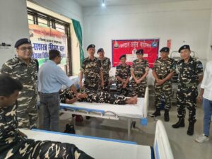 बथनाहा. रक्तदान के बढ़ावा देने के उद्देश्य से 56वीं वाहिनी के कमांडेंट शाश्वत कुमार के दिशा निर्देश पर बथनाहा मुख्यालय स्थित चिकित्सालय में युवा जागृति मंच पूर्णिया द्वारा एक दिवसीय रक्तदान शिविर का आयोजन किया गया. रक्तदान शिविर में वाहिनी के अधिकारी व कार्मिकों ने रक्तदान किया. इस शिविर में ब्लड बैंक पूर्णिया की मेडिकल टीम से संस्थापक व 56 वीं वाहिनी से डॉ एचके शिंदे कमांडेंट चिकित्सा, मदन मोहन भट्ट उप कमांडेंट, वाहिनी चिकित्सालय व संयुक्त अस्पताल बथनाहा के अधिकारी व अन्य कार्मिक मौजूद थे.