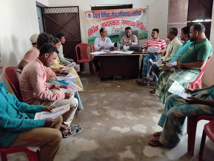 अररिया. रविवार को जिला विधिक सेवा प्राधिकरण के तत्वावधान में जिले के कुर्साकांटा थाना क्षेत्र के ग्राम पंचायत राज लैलोखर में विधिक जागरूकता शिविर का आयोजन किया. शिविर में मुख्य वक्ता के रूप डीएलएसए के पैनल अधिवक्ता मिथिलेश कुमार झा ने की. आगामी 13 दिसंबर को होने वाले राष्ट्रीय लोक अदालत शिविर के निमित्त लैलोखर के ग्रामीणों को विस्तृत जानकारी दी गयी. वहीं विषय से संबंधित पैनल अधिवक्ता मिथिलेश कुमार झा ने उपस्थित ग्रामीणों को बाल संरक्षण के मामले में कई टिप्स दिए. खासकर बाल विवाह, एसिड अटैक, बाल श्रमिक, चाइल्ड ट्रैफिकिंग आदि विषयों पर विस्तार पूर्वक जानकारी दी गयी. मौके पर पीएलवी बुधन मंडल, रंजीत कुमार, वार्ड सदस्य अनवर अली, वार्ड सदस्य अलताफ़, वार्ड सदस्य पूर्णिमा, वार्ड सदस्य नावेद, शाहनवाज, नवीन, रौशन, इस्लामूल, इंज़ार, तालिम सहित दर्जनों ग्रामीण मौजूद थे.