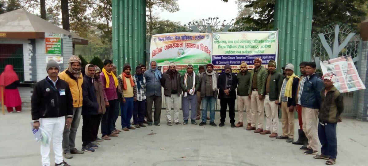 अररिया. बिहार राज्य विधिक सेवा प्राधिकार पटना के निर्देशानुसार कुसियारगांव जैव विविधता उद्यान में प्रोटेक्ट टुडे, सिक्योर टुमारो इनवायरमेंटल लीगल लिटरेसी व कम्यूनिटी प्रोटेक्शन इनिशिएटिव व बाल विवाह मुक्त भारत अभियान पर विधिक जागरूकता शिविर का आयोजन किया गया. जिला विधिक सेवा प्राधिकार के तत्वावधान में आयोजित शिविर की अध्यक्षता जिला विधिक सेवा प्राधिकार के पैनल अधिवक्ता मो परवेज आलम ने की. उन्होंने उपस्थित ग्रामीण व वन विभाग के अधिकारी व कमिर्यों के साथ पर्यावरण व बाल विवाह पर विस्तृत चर्चा की. पीएलवी मनोज प्रसाद के द्वारा उपस्थित पर्यटकों, ग्रामीणों व पार्क के कर्मियों इस संबंध में विस्तृत जानकारी दी. मौके पर वन विभाग से वनों के क्षेत्र पदाधिकारी राधेश्याम राय, वनरक्षी गौरव कुमार, अरमान खान, अभिषेक कुमार, सोनी कुमारी, वन कर्मी केदार सिंह, नंदन यादव, सिंटू कुमार, विजय यादव व कुसियारगांव मुखिया माणिकचंद सिंह, सरपंच मो मुजाहिद सहित अन्य मौजूद थे.