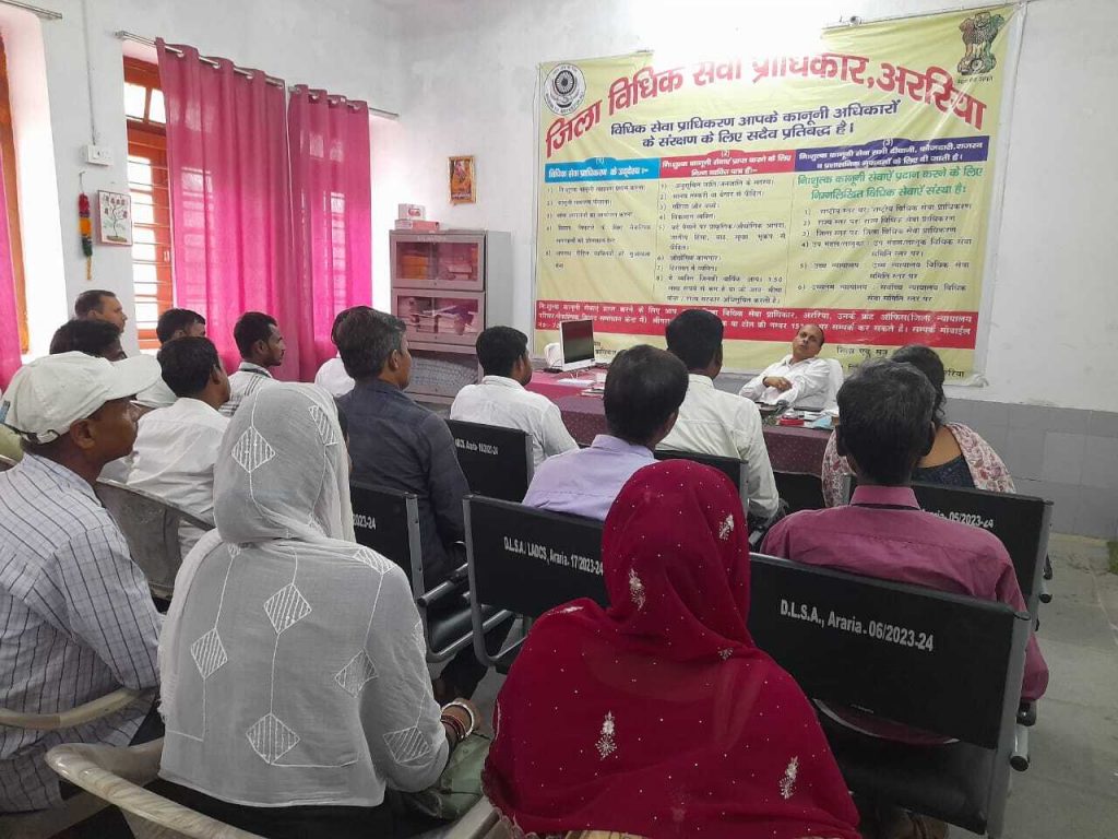 पीएलवी का एक दिवसीय संवेदीकरण प्रशिक्षण संपन्न फोटो:-1- संबोधित करते अवर न्यायाधीश डीएलएसए सेक्रेटरी. प्रतिनिधि, अररिया पीएलवी अब न्याय रक्षक व अधिकार मित्र के नाम से जाने जायेंगे. यह बातें शनिवार को न्यायमंडल स्थित पुराने सीजेएम बिल्डिंग में चल रहे डीएलएसए कार्यालय में एक दिवसीय संवेदीकरण व प्रशिक्षण कार्यक्रम में पीएलवी को संबोधित करते हुए जिला व सत्र न्यायाधीश हर्षित सिंह के निर्देश पर अवर न्यायाधीश सह डीएलएसए सेक्रेटरी रोहित श्रीवास्तव ने की. इस प्रशिक्षण कार्यक्रम की अध्यक्षता अवर न्यायाधीश सह डीएलएसए सेक्रेटरी रोहित श्रीवास्तव ने की. डीएलएसए सेक्रेटरी रोहित श्रीवास्तव ने प्रशिक्षण कार्यक्रम में पीएलवी (अधिकार मित्र) न्याय रक्षक को संवेदीकरण प्रशिक्षण को लेकर उपस्थित सभी पीएलभी को उनकी भूमिका व कानूनी सहायता प्रणाली के बारे विस्तृत जानकारी दी. इस मौके पर न्याय रक्षक व अधिकार मित्र क्रमशः विकास कुमार वर्मा, परमानंद मंडल उर्फ बबलू, विनय ठाकुर, कुमोद कुमार पासवान, बिमल किशोर झा, सोनी कुमारी, राजीव कुमार रंजन, मिथिलेश कुमार, विकाश कुमार मिश्रा, त्रिदेव कुमार मेहता, अमित कुमार दास, मनोज प्रसाद, नाजरीन खातून, नुरून निशा, मिथिलेश यादव,,ललन राम, मो इनाम आलम, मनोज प्रसाद, बुद्धन मंडल, ललन कुमार राम, ओमप्रकाश यादव, बबलू राम सहित कई पीएलवी मौजूद थे. ——————————————- कैश लेकर निकलने से पहले थाना को दें सूचना सीएसपी संचालक के साथ थानाध्यक्ष ने की बैठक, दिये कई निर्देश फोटो-2- बैठक में उपस्थित थानाध्यक्ष व सीएसपी संचालक. प्रतिनिधि, भरगामा प्रखंड के सभागार भवन में थानाध्यक्ष राकेश कुमार की अध्यक्षता में प्रखंड क्षेत्र के सभी सीएसपी संचालक के साथ बैठक की गयी. थानाध्यक्ष राकेश कुमार ने बारी बारी से सीएसपी संचालक को बैंक से रुपये लाने के दौरान सुरक्षा के उपाय बताए. बैठक में सीएसपी संचालकों को कई तरह के दिशा निर्देश दिये. थानाध्यक्ष ने सख्त लहजे में कहा सभी सीएसपी संचालक कैश लेकर निकलने से पहले थाना को सूचना दें, जिस पर हम सुरक्षा मुहैया कराने को लेकर तत्पर रहेंगे. थानाध्यक्ष ने सभी संचालकों को कैश ले जाते समय विशेष चौकसी बरतने की बातें कही. कैशबैन के अंदर चालू हालत में मोबाइल रखने की भी बात कही. क्षेत्र में लगातार हो रही सीएसपी संचालक व माइक्रो फाइनेंस कर्मियों के साथ हो रही घटनाओं को लेकर भरगामा पुलिस काफी सजग है. इसको लेकर रविवार को भरगामा प्रखंड मुख्यालय परिसर के सभागार भवन में बैठक आयोजित कर निर्देश का सख्ती से पालन करने को कहा. बैठक के संदर्भ में थानाध्यक्ष ने कहा प्रखंड क्षेत्र में लगातार माइक्रो फाइनेंस बैंक कर्मी व सीएसपी संचालक दिए गए निर्देश को अनदेखा कर रहें हैं 