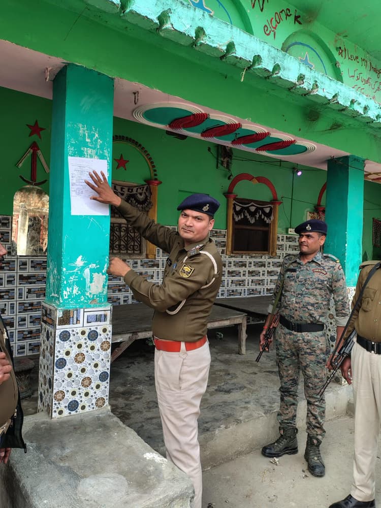 हत्यारोपित के घर पुलिस ने चिपकाया इश्तेहार