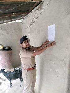 आरोपित के घर पुलिस ने चिपकाया इश्तेहार