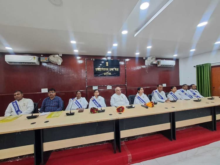 अररिया. मूल्य निष्ट व तनाव मुक्त जीवन के लिए मेडिटेशन का कार्यक्रम प्रजापिता ब्रह्माकुमारी ईश्वरीय विश्वविद्यालय अररिया आरएस द्वारा राजयोगिनी उर्मिला भवन के नेतृत्व में हरिया बारा पुलिस लाइन में सार्जेंट सुधीर कुमार के सहयोग से व समाहरणालय अररिया में डीएम के सहयोग से संपन्न हुआ. समाहरणालय में 60 से 70 प्रशासनिक पदाधिकारी साथ में वरीय अपर समाहर्ता संजय कुमार को राजयोग मेडिटेशन व तनाव से मुक्ति पर अंतरराष्ट्रीय मुख्यालय से पधारे ब्रह्माकुमारी मधु बहन बीके सोनिका बहन शेफाली बहन व हरीश भाई ने एक सुंदर राज योग मेडिटेशन की अनुभूति करायी. शेफाली बहन ने अपने उद्घोषन में कहा कि 24 घंटे में अगर हम स्वयं के लिए एक घंटा स्वयं को श्रृंगार के लिए निकाले तो जीवन में तनाव कभी नहीं होगा. अपने कर्तव्य व उत्तरदायित्व के प्रति निष्ठावान रहें व आप जहां भी अपने कर्म क्षेत्र में रहें अपने कर्म क्षेत्र में निमित्त बनाकर सेवा करें. आज के समय में नैतिकवान बनना अपने आप में ऊर्जावान बनना है इस मौके पर सुरेश भाई रोहित भाई भास्कर भाई दया बहन सिमरन बहन अनिल स्वर्णकार विकास यादव उपस्थित थे. मंच संचालन का कार्य बैंक कर्मी संजय भाई ने किया.