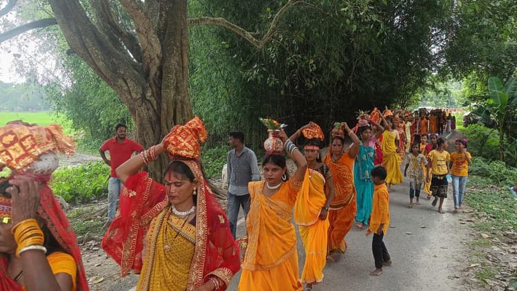 सिमराहा. नवरात्रि के पावन अवसर पर सिमराहा थाना क्षेत्र के रानी पोखर स्थित दुर्गा मंदिर में सोमवार को कलश स्थापना के साथ भव्य कलश शोभायात्रा निकाली गयी. इस धार्मिक अनुष्ठान में 501 कुंवारी कन्याओं ने भाग लिया. शोभायात्रा रानी पोखर दुर्गा मंदिर से आरंभ होकर हिंगना, टिहला व शंकरपुर गांव होते हुए पुनः मंदिर परिसर में संपन्न हुई. पूरे क्षेत्र में वैदिक मंत्रोच्चारण व मां दुर्गा के जयघोष से भक्तिमय वातावरण बना रहा. कलश यात्रा के पश्चात माता रानी की विधिवत पूजा-अर्चना शुरू हुई. नवरात्रि के प्रथम दिन मां दुर्गा के प्रथम स्वरूप माता शैलपुत्री की आराधना की गयी, जिसमें बड़ी संख्या में श्रद्धालु शामिल हुए. दुर्गापूजा समिति रानी पोखर के अध्यक्ष शिशुपाल कुमार व औराही पश्चिम पैक्स अध्यक्ष सुनील मंडल ने बताया कि गांव की सुख-समृद्धि व शांति के लिए प्रत्येक वर्ष नवरात्रि की शुरुआत कलश स्थापना व शोभायात्रा से होती है.