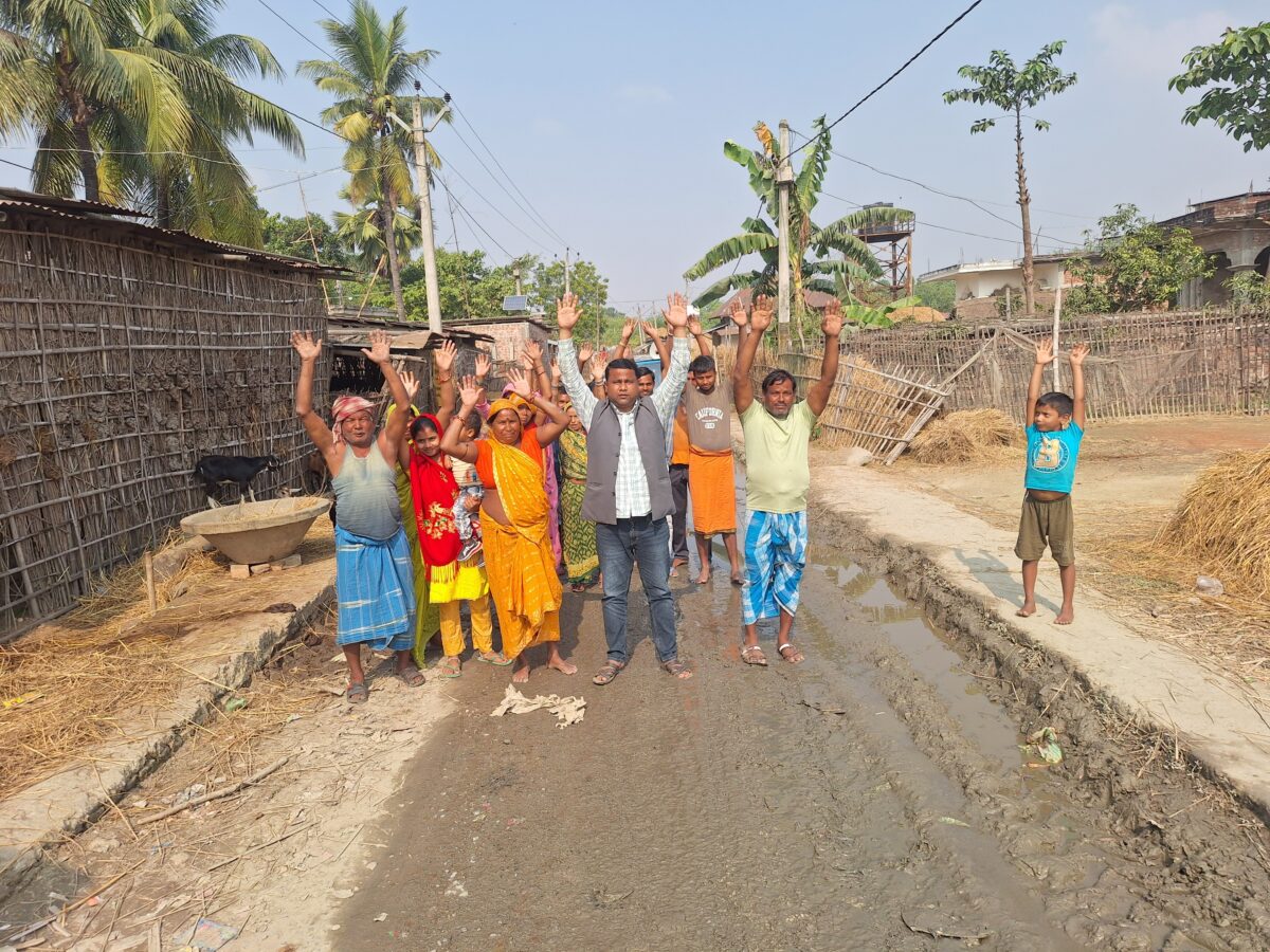 सड़क की जर्जर स्थिति पर ग्रामीणों ने किया प्रदर्शन