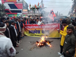 अररिया. बांग्लादेश में हुए हिंदू युवक की हत्या के विरोध रविवार को सभ्य समाज अररिया के बैनर तले आक्रोश मार्च निकाला. यह मार्च शहर के बस स्टैंड से निकलकर चांदनी चौक पर समाप्त हुआ. इस दौरान दर्जनों लोगों ने बांग्लादेश के ढाका में हिंदू युवक दीपू दास की निर्मम हत्या के विरोध में बांग्लादेश के सरकार के खिलाफ जमकर नारेबाजी की. साथ ही बांग्लादेश के पीएम मो युनुस का पुतला दहन किया.