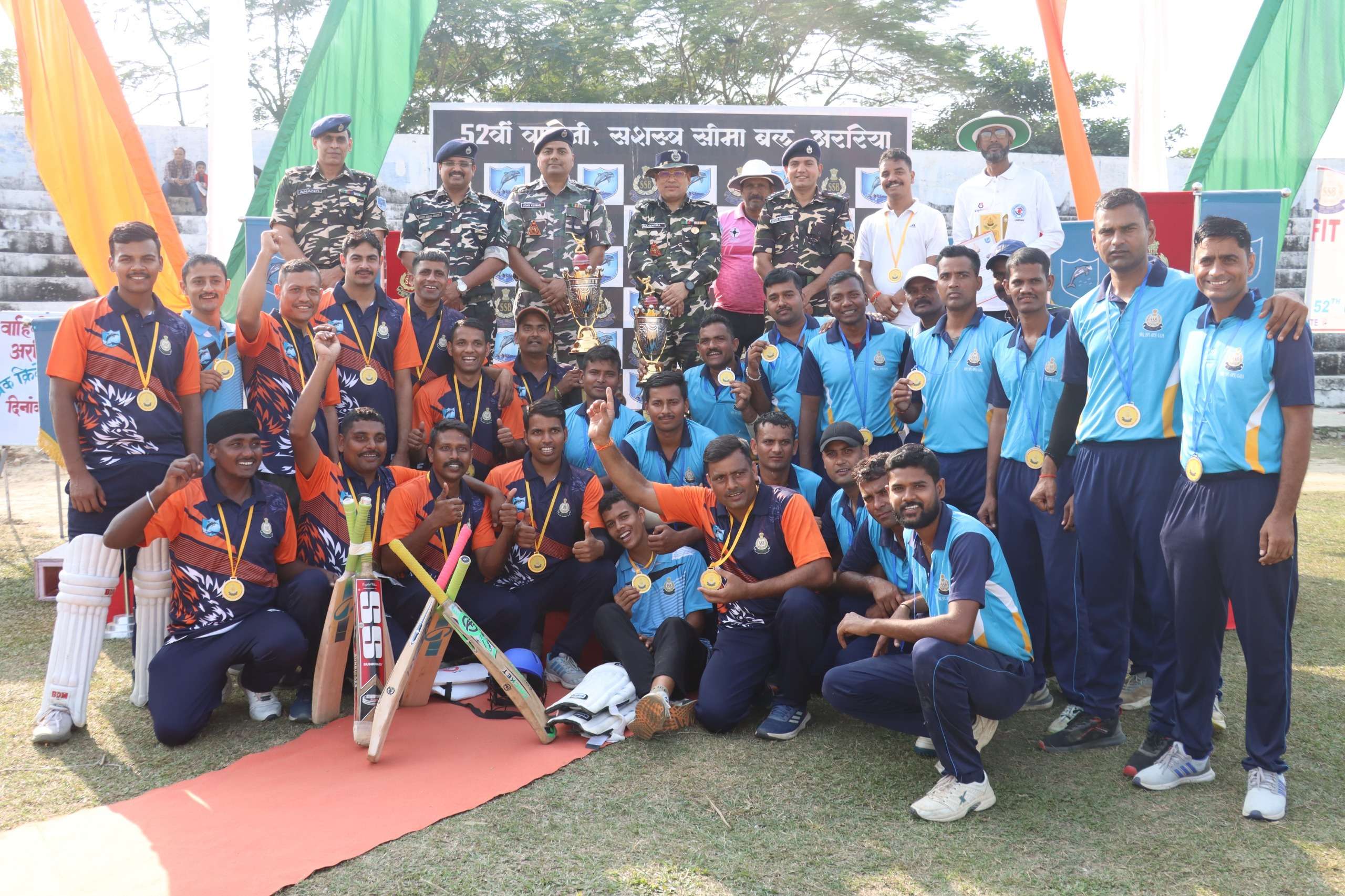 अररिया. एसएसबी 52 वीं वाहिनी अररिया द्वारा अररिया कॉलेज स्टेडियम में आयोजित अंतर क्षेत्रक स्तरीय क्रिकेट टूर्नामेंट का फाइनल मैच बुधवार को खेला गया. यह मैच क्षेत्रक मुख्यालय पूर्णिया व गया जी की टीम के बीच खेला गया. गया जी की टीम द्वारा टॉस जीत पहले बल्लेबाजी करते हुए गया जी की टीम ने 14.4 ओवर में 10 विकेट के नुकसान पर 101 रन बनाएं. वहीं क्षेत्रक मुख्यालय पूर्णिया की टीम ने 14.3 ओवर में 03 विकेट के नुकसान पर लक्ष्य प्राप्त कर 07 विकेट से फाइनल मुकाबला अपने नाम किया. क्षेत्रक मुख्यालय पूर्णिया की ओर से आरक्षी अंकित कुमार शाह ने नाबाद 54 रनों की महत्वपूर्ण पारी खेली. टूर्नामेंट का समापन 52 वीं वाहिनी एसएसबी के कमांडेंट महेंद्र प्रताप द्वारा दोनों टीमों को ट्रॉफी देकर किया गया. इस दौरान उन्होंने दोनों टीमों को बधाई दी व उनके उज्ज्वल भविष्य की कामना की. साथ हीं निर्णायक की भूमिका निभाने वाले जिला क्रिकेट एसोसिएशन अररिया के अनुभवी अंपायर अश्वनी कुमार व तनवीर आलम को भी सम्मानित किया गया. मैच का आंखो देखा हाल मुख्य आरक्षी राकेश सिराधना व अमरेश कुमार पासवान द्वारा सुनाया गया. मौके पर उप कमांडेंट आनंद प्रकाश यादव, विवेक कुमार ओझा, जोशी सागर प्रदीप व विजय दीक्षित, सहायक कमांडेंट अभिषेक गुप्ता व अंकित जांगड़ा सहित अन्य बल कार्मिक मौजूद थे.