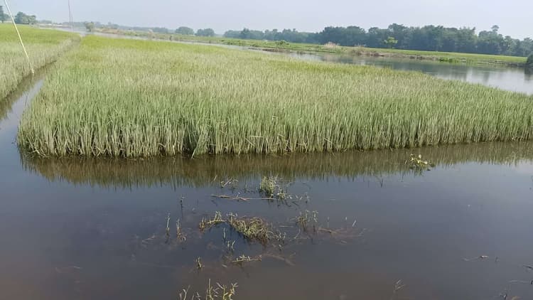 फारबिसगंज. पिछले दिनों प्रखंड क्षेत्र में आई बाढ़ के कारण धान की फसलों को काफी नुकसान पहुंचाया है. पनार नदी के जलस्तर में वृद्धि से कई पंचायतों में धान की फसलों को प्रभावित किया. पानी में धान का पौधा डूबने से किसान परेशान हैं. लहसुनगंज- हलहलिया के किसान अजय मंडल, पप्पू विश्वास, राकेश कुमार आदि बताते हैं अभी धान में बाली आया ही था की फसल पानी में डूब गया. जिससे धान का फसल को भारी नुकसान हुआ है. किसानों ने कृषि विभाग के अधिकारियों से मांगा की फसल के नुकसान का आकलन किया जाए व सरकारी सहायता उपलब्ध कराया जाए. पनार नदी के किनारे खेतों को सबसे अधिक नुकसान पहुंचा है. वहीं बाढ़ प्रभावित इलाकों में कई जगहों पर सड़कों को काफी नुकसान हुआ है. जिसकी मरम्मतीकरण कराने की भी मांग लोगों ने विभागीय अधिकारियों से की है.