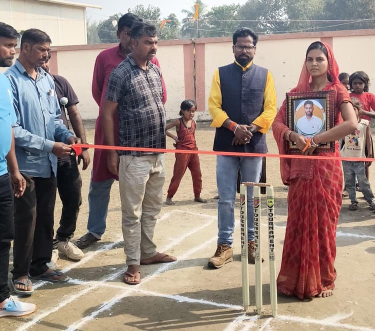 भरगामा. डीडीसी टाइगर क्लब धनेश्वरी के तत्वावधान में राजेश कुमार मंडल की स्मृति में क्रिकेट टूर्नामेंट का शुभारंभ गुरुवार को किया गया. यह टूर्नामेंट 12 फरवरी से 22 फरवरी तक आयोजित किया जायेगा. जिसमें कुल 08 टीमों ने भाग लिया है. उद्घाटन समारोह में स्थानीय खेलप्रेमियों व ग्रामीणों की भारी उपस्थिति रही. टूर्नामेंट का उद्घाटन स्व राजेश मंडल की पत्नी गुंजन देवी ने फीता काटकर किया. इस अवसर पर उपस्थित लोगों ने स्व मंडल को श्रद्धांजलि अर्पित करते हुए खेल भावना को आगे बढ़ाने का संकल्प लिया. टूर्नामेंट का पहला मैच पूर्णिया बनाम बेला के बीच खेला गया. टॉस जीतकर पूर्णिया की टीम ने पहले बल्लेबाजी करने का निर्णय लिया. निर्धारित ओवरों में पूर्णिया ने शानदार प्रदर्शन करते हुए 08 विकेट के नुकसान पर 97 रन बनाया. लक्ष्य का पीछा करने उतरी बेला की टीम पूर्णिया के सधे हुए गेंदबाजी आक्रमण के सामने टिक नहीं सकी व 66 रन पर ऑल आउट हो गयी. इस प्रकार पूर्णिया की टीम ने शानदार जीत दर्ज की. टूर्नामेंट को सफल बनाने में व्यवस्थापक के रूप में मनोज कुमार शाह, ललन कुमार मंडल, किशोर पासवान,सुधीर मंडल, कौशिक कुमार, विक्रम कुमार, टीपू कुमार व रणधीर मंडल की महत्वपूर्ण भूमिका रही.