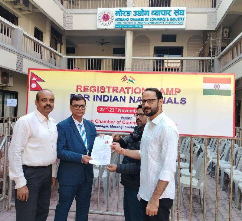 जोगबनी. नेपाल में अध्ययनरत व विभिन्न उद्योगों व व्यवसायों से जुड़े भारतीय नागरिकों का विवरण विराटनगर में पंजीकृत व नवीनीकृत किया गया है. भारतीय दूतावास के सहयोग से मोरंग उद्योग व व्यापार संघ ने शनिवार से दो दिवसीय पंजीकरण शिविर की शुरूआत की. बताया जा रहा है कि विराटनगर में रहने वाले अधिकांश भारतीय नागरिकों का पंजीकरण व नवीनीकरण का काम शनिवार को ही पूरा हो गया. पंजीकरण संघ के अध्यक्ष अनुपम राठी व भारतीय दूतावास के प्रतिनिधि आरपी सिंह ने संयुक्त रूप से पंजीकरण व नवीनीकरण कराने वाले भारतीय नागरिकों को पंजीकरण प्रमाण पत्र प्रदान किये.