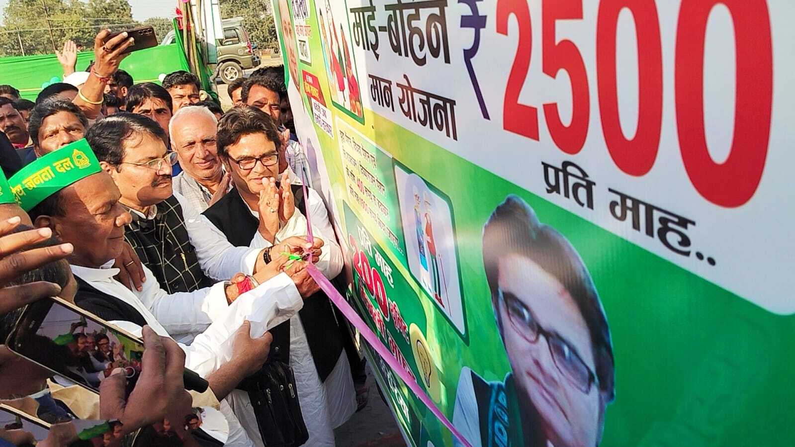 7-प्रतिनिधि, नरपतगंज प्रखंड मुख्यालय के व्यापार मंडल में राजद द्वारा आयोजित तेजस्वी की बात, बिहार के साथ ” जनसंवाद कार्यक्रम में राजद जिलाध्यक्ष मनीष यादव ने तेजस्वी यादव के किये गये वादों को सरकार बनने पर माई बहन योजना के तहत प्रति माह 2500 रुपये, 200 यूनिट बिजली मुक्त, पेंशन की राशि बढ़ाकर 1500 सहित विभिन्न योजनाओं की जानकारी लोगों दी. वहीं राज्यसभा सांसद व राजद के राष्ट्रीय प्रवक्ता प्रो मनोज झा भी जन संवाद कार्यक्रम के दौरान तेजस्वी सरकार बनने पर राजद द्वारा घोषित माई-बहन मान योजना, सामाजिक सुरक्षा पेंशन योजना व 200 यूनिट बिजली मुफ्त योजना के बारे में जानकारी देते हुए व्यापक प्रचार प्रसार के लिए राजद जिलाध्यक्ष मनीष यादव ने रथ का निर्माण किया. जिसे जिला संगठन प्रभारी व प्रदेश महासचिव प्रो कुमार चंद्रदीप, अररिया के पूर्व सांसद सुकदेव पासवान, पूर्व जिलाध्यक्ष विश्वमोहन यादव, क्रांति कुंवर, प्रखंड अध्यक्ष धनंजय यादव व अन्य नेताओं ने फीता काटकर उद्घाटन किया. वहीं जिलाध्यक्ष मनीष यादव ने बताया कि लालू व तेजस्वी यादव के संदेश को जन जन तक पहुंचाने के उद्देश्य से ये रथ का निर्माण किया गया है. जो गांव-गांव जाकर लोगों को तेजस्वी के वायदे से अवगत करायेगा.