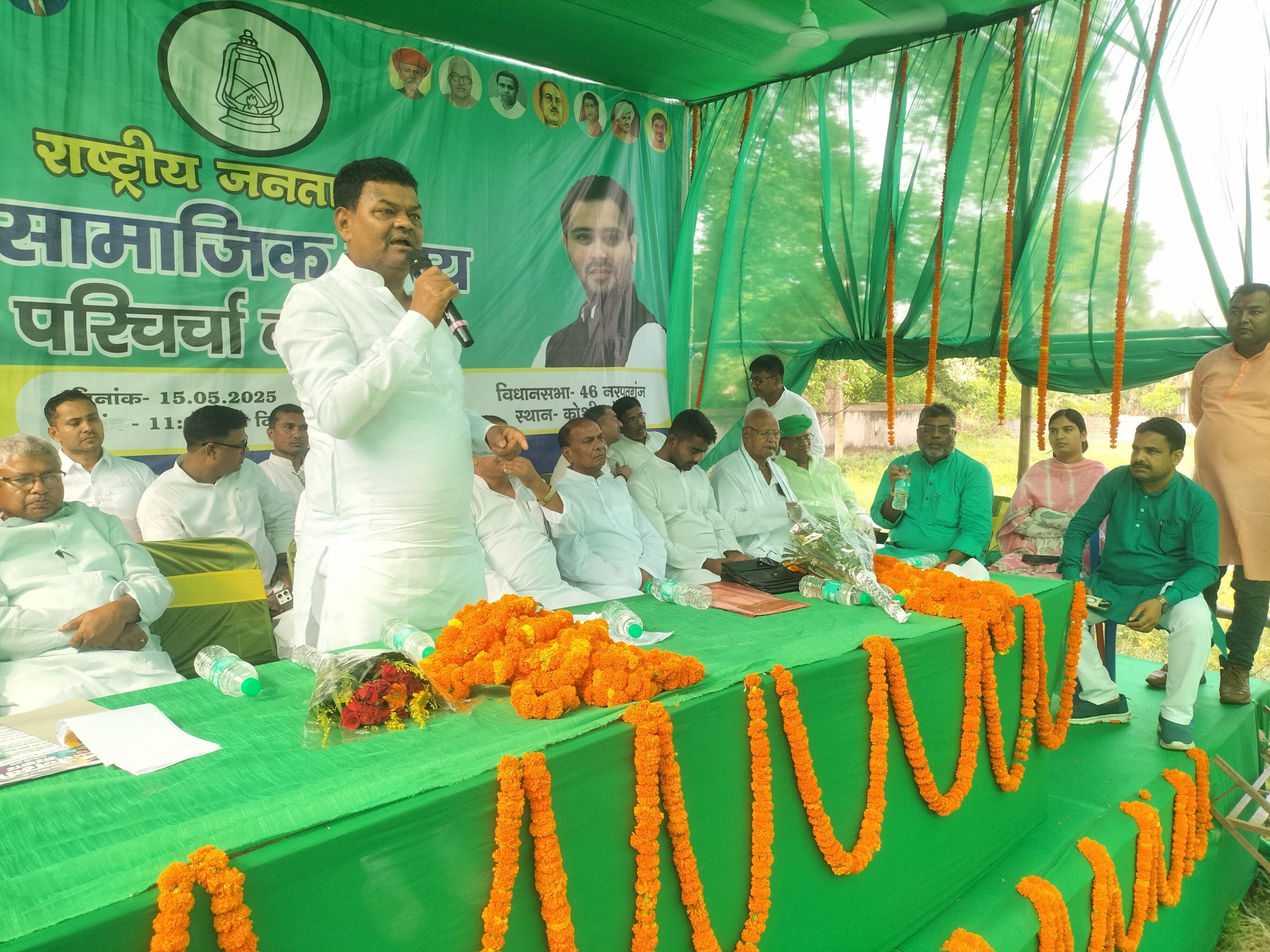 नरपतगंज में राजद सामाजिक न्याय परिचर्चा का आयोजन -18-प्रतिनिधि, नरपतगंज नरपतगंज मुख्यालय के कोसी कॉलोनी परिसर में गुरुवार को राजद के द्वारा सामाजिक न्याय परिचर्चा कार्यक्रम का आयोजन किया गया. कार्यक्रम की अध्यक्षता प्रखंड अध्यक्ष धनंजय यादव ने की. कार्यक्रम में मुख्य अतिथि के रूप में उपस्थित पूर्व मंत्री ललित यादव ने कहा कि राजद ने हमेशा समाज के पिछड़े, दलित, अल्पसंख्यक व वंचित वर्गों की आवाज को बुलंद किया है. सामाजिक न्याय सिर्फ एक नारा नहीं बल्कि हमारी राजनीतिक चेतना व संघर्ष का मूल है. यह कार्यक्रम सामाजिक बदलाव की चेतना का प्रतीक है. हमें एकजुट होकर सामाजिक समरसता को मजबूती देनी है. इस लड़ाई को निर्णायक मोड़ तक ले जाना है. लोकही विधायक भारत भूषण मंडल ने कहा कि राजद ही एकमात्र ऐसा दल है जो गरीबों, वंचितों व पिछड़ों की वास्तविक चिंता करता है. आज के कार्यक्रम में युवाओं की बड़ी भागीदारी इस बात का संकेत है कि बदलाव की हवा बह रही है. पूर्व विधायक अनिल यादव ने कहा कि सामाजिक न्याय की बात केवल भाषणों में नहीं, बल्कि धरातल पर दिखायी देनी चाहिये. कार्यक्रम में कार्यकर्ताओं को प्रशिक्षण देते हुए बूथ से लेकर प्रदेश तक संगठन मजबूत करते हुए हमलोगों को एकजुट होकर 2025 में नेता प्रतिपक्ष तेजस्वी यादव को मुख्यमंत्री बनाने का संकल्प लिया. जिलाध्यक्ष मनीष यादव ने युवाओं से आह्वान किया कि वे आगे आएं. राजद की विचारधारा को घर-घर तक पहुंचाएं. मौके पर पूर्व मंत्री ललित यादव, पूर्व लोकसभा प्रत्याशी डॉ चंद्रदीप, राष्ट्रीय महासचिव सुखदेव पासवान, प्रदेश महासचिव बदरे आलम बदर, अमित पूर्वे, अनिल कुमार यादव, भंटू यादव, पिंकू यादव, नागेश्वर यादव, जयप्रकाश यादव, सूर्यनारायण यादव ,सिकेन्द्र यादव, गणेश यादव आदि मौजूद थे.