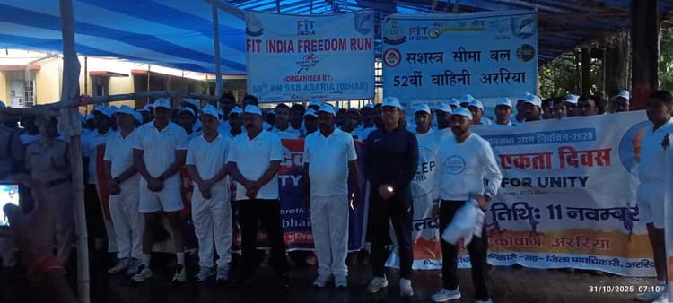 अररिया. स्वीप अभियान के तहत आगामी विधानसभा चुनाव में अधिक से अधिक मतदाताओं की भागीदारी सुनिश्चित कराने के उद्देश्य से जिले में विभिन्न स्तरों पर जरूरी पहल की जा रही है. इसी कड़ी में शुक्रवार को खेल भवन अररिया से रन फॉर यूनिटी कार्यक्रम का आयोजन किया गया. पुलिस अधीक्षक अंजनी कुमार, सहित जिलास्तरीय अन्य अधिकारियों के साथ एसएसबी 52वीं वाहिनी के जवान समाहरणालय कर्मी व आम नागरिक ने कार्यक्रम में बढ़-चढ़ कर भाग लिया. कार्यक्रम स्थली पर आकर्षक सेल्फी प्वाइंट बनाया गया था. लोगों ने कार्यक्रम में भाग लेते हुए लोगों से आगामी विधानसभा चुनाव में बढ़-चढ़ कर अपनी भागीदारी सुनिश्चित करने की अपील की.49
