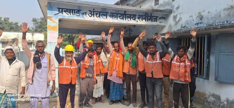 10- प्रतिनिधि, परवाहा बीते एक वर्ष से वेतन नहीं मिलने से नाराज स्वच्छता कर्मियों ने सोमवार को रानीगंज प्रखंड मुख्यालय में विरोध प्रदर्शन किया. प्रदर्शन कर रहे विस्टोरिया पंचायत के साबिर, दयानंद बहरदार, रंजन कुमार, रमेश ऋषिदेव, मुख्तार आलम, आदि ने बताया कि हमलोग पिछले एक साल से विस्टोरिया पंचायत में सफाई का काम करते हैं. स्वच्छता कर्मी के रूप में बहाली की गयी थी कि काम के शुरुआती तीन महीने हर महीने 1500 रुपये की दर से मिलेंगे. इसके बाद हर महीने तीन हजार रुपये मिलेंगे. लेकिन हमलोगों को साफ सफाई का काम करते हुए एक साल से अधिक समय हो गया है. लेकिन अबतक एक भी रुपये नहीं मिला है. हमलोगों के सामने भुखमरी की समस्या उत्पन्न हो गई है. कोई सुनने वाला नहीं है. यदि हमलोगों को जल्द पैसे नहीं मिलेगा तो हमलोग उग्र प्रदर्शन करने को बाध्य होंगे. मामले को लेकर बीडीओ रीतम कुमार चौहान ने बताया कि डीआइओ के आइडी पासवर्ड एक्सपायर हो गया है. जिसके कारण स्वच्छता कर्मियों को पैसा नहीं मिल रहा है.