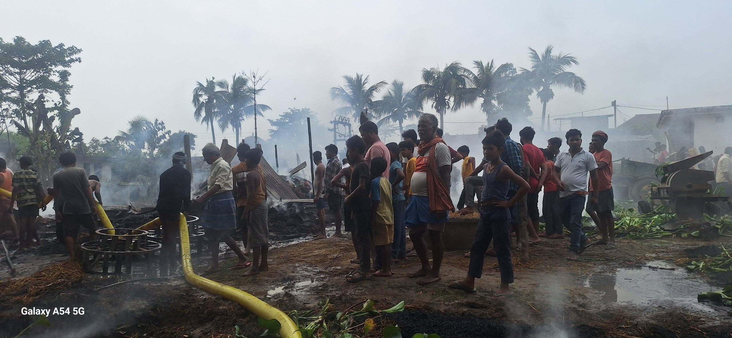 -9-प्रतिनिधि,कुर्साकांटाप्रखंड क्षेत्र के ग्राम पंचायत पहुंसी के वार्ड संख्या 02 पश्चिम टोला पहुंसी में थ्रेसर से गेहूं तैयार करने के क्रम में दो परिवारों के सात घर जल गये. जिसमें 10 लाख रुपये का सामान जलने का अनुमान है. अगलगी पीड़ित परिवारों में शामिल काशीनाथ सिंह पिता स्व कारे सिंह व बिरेंद्र सिंह पिता काशीनाथ सिंह ने बताया कि घर में रखे धान, गेहूं, थ्रेसर, ट्रैक्टर ट्रॉली, एक बाइक, 05 साइकिल सहित अन्य सामान जलकर राख हो गया. अगलगी की सूचना दमकल को दी गयी. सूचना मिलते ही पहुंचा दमकल व ग्रामीणों के सहयोग से काफी मशक्कत के बाद आग पर काबू पाया जा सका.