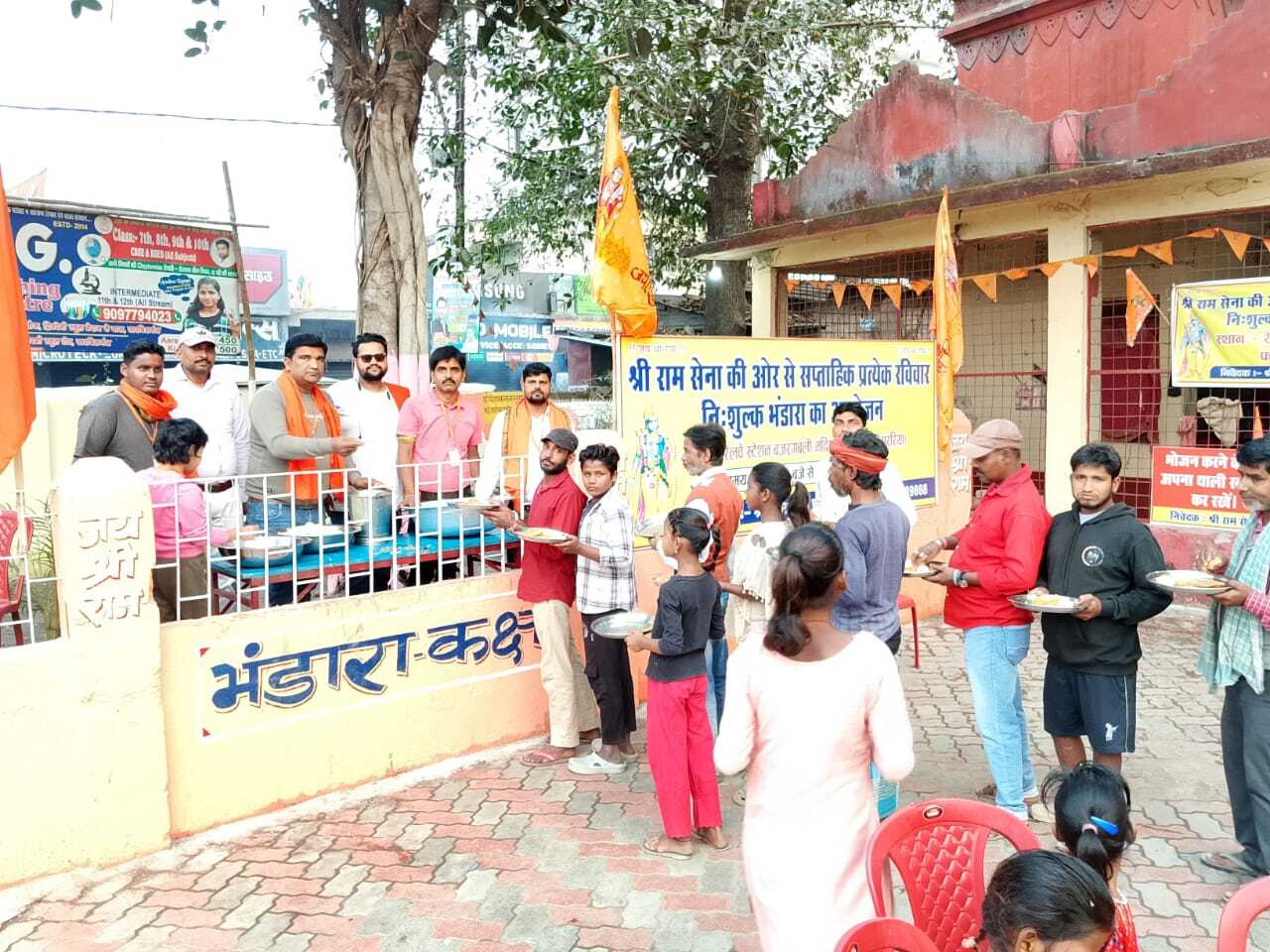 -9-प्रतिनिधि, फारबिसगंज फारबिसगंज रेलवे स्टेशन स्थित अंजनी नंदन ठाकुरबाड़ी में रविवार को श्रीराम सेना द्वारा साप्ताहिक भंडारा का आयोजन किया गया. मालूम हो कि श्रीराम सेना फाउंडेशन के द्वारा प्रत्येक रविवार को चार बजे से मंदिर में भंडारा का आयोजन किया जाता है. आयोजन को लेकर श्रीराम सेना के राष्ट्रीय अध्यक्ष प्रदीप देव व प्रदेश अध्यक्ष अमित कुमार उर्फ डिंपल चौधरी ने बताया कि भंडारे में हजारों लोगों ने प्रसाद का ग्रहण किया. उन्होंने बताया कि पूड़ी सब्जी व हलुआ का प्रसाद श्रद्धालुओं व निःसहाय के बीच वितरण किया गया. उन्होंने कहा कि ट्रेन से उतरने वाले यात्रियों के साथ रिक्सा व ऑटो चालक व लोगों के बीच प्रसाद वितरण किया गया. भंडारा के सफलता पूर्वक आयोजन को लेकर श्रीराम सेना के प्रदेश अध्यक्ष अमित कुमार उर्फ डिंपल चौधरी,उपाध्यक्ष भवेश कश्यप, कोषाध्यक्ष किशु ठाकुर, गजेंद्र गुप्ता,नवीन गुप्ता,आलोक झा,अशोक भगत, बमबम ठाकुर,गोविंद झा, राहुल मंडल, सुहानी गुप्ता सहित दर्जनों कार्यकर्ता सक्रिय हो कर लगे रहे.
