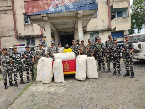 -6-प्रतिनिधि,कुर्साकांटा गुप्त सूचना के आधार पर रविवार की देर रात एसएसबी 56वीं बथनाहा व कुर्साकांटा पुलिस की संयुक्त कार्रवाई में दो क्विंटल 89 किलोग्राम गांजा के साथ एक तस्कर को गिरफ्तार कर लिया गया. एसएसबी 56वीं के राजपत्रित अधिकारी मदन मोहन भट्ट कुशमाहा को गुप्त सूचना मिली कि कुर्साकांटा थाना क्षेत्र के लक्ष्मीपुर वार्ड संख्या 01 में एक घर में नेपाल के रास्ते मादक पदार्थों का बड़ा खेप लाकर बेचने के लिए रखा गया. इसकी सूचना एसएसबी 56 वीं के वरीय अधिकारी को दी गयी. सूचना मिलते ही एसएसबी की टीम गठित कर कुर्साकांटा थाना को सूचित करते हुए तीन संयुक्त कार्रवाई को लेकर लक्ष्मीपुर वार्ड संख्या 01 रवाना हुई. जहां से गांजा तस्कर संजय यादव पिता हरिश्चंद्र यादव के घर से छापामारी कर दो क्विंटल 89 किलोग्राम गांजा बरामद हुआ. इस मौके पर से गांजा तस्कर को भी गिरफ्तार कर लिया गया. इंस्पेक्टर प्रवीण प्रभाकर ने बताया कि कुर्साकांटा थाना में बरामद गांजा व गिरफ्तार तस्कर के विरुद्ध एनडीपीएस एक्ट 50 के तहत प्राथमिकी दर्ज करायी गयी है. वहीं थानाध्यक्ष अभिषेक कुमार ने बताया कि गिरफ्तार तस्कर से पूछताछ के बाद न्यायिक हिरासत में सोमवार को भेज दिया.