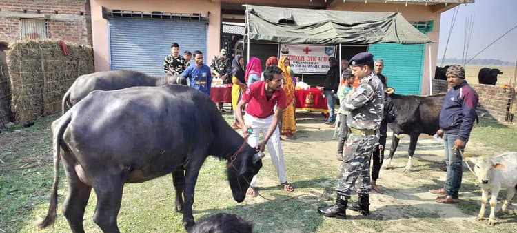 56 वीं वाहिनी सशस्त्र सीमा बल बथनाहा के कमांडेंट सुरेंद्र विक्रम के निर्देशन में एच समवाय कुशमाहा के कार्यक्षेत्र स्थित हटेवा गांव में 26 सीमावर्ती पशुपालक के 103 पशु व डी समवाय डुबाटोला बीओपी आमगाछी के कार्यक्षेत्र में 36 सीमावर्ती पशुपालक के 119 पशुओं का नि:शुल्क पशु चिकित्सा शिविर के माध्यम से उपचार किया गया. पशु चिकित्सा शिविर में डॉ घनश्याम पटेल, उप कमांडेंट ( पशु चिकित्सा) क्षेत्र मुख्यालय पूर्णिया के द्वारा सीमावर्ती पशुओं की निशुल्क जांच की गयी. उनके परामर्श के अनुसार 56 वीं वाहिनी के पशु चिकित्सा शाखा के स्टाफ द्वारा स्थानीय पशुपालकों को मुफ्त दवाइयों का वितरण किया गया. इस अवसर पर पशु चिकित्सा शिविर से कुल 66 सीमावर्ती पशुपालक के 222 पशु लाभान्वित हुए. इस अवसर पर 56 वीं वाहिनी के अधिकारीगण, अधीनस्थ अधिकारी , स्थानीय ग्रामीण व 56 वीं वाहिनी के अन्य कार्मिक मौजूद थे.——–