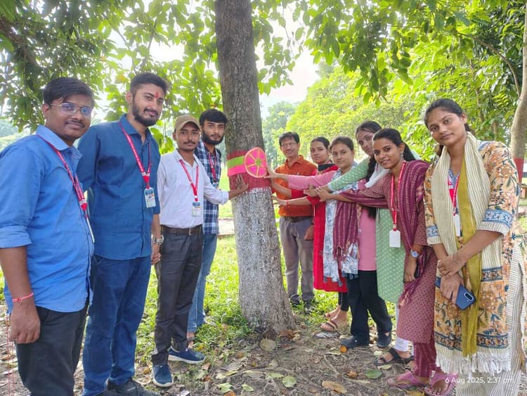फारबिसगंज. फारबिसगंज कॉलेज फारबिसगंज के बीएड विभाग के छात्र अध्यापक व छात्रा अध्यापिकाओं द्वारा अपने हाथों से राखी का निर्माण कर कॉलेज परिसर में लगे पेड़ों को बचाने के मुहिम के लिए वृक्षों से वचन रक्षा का वचन के साथ राखियां बांधी. कॉलेज के बीएड विभाग के कला के व्याख्याता राजेश कुमार के नेतृत्व में छात्र-छात्राओं ने अपने हाथों से राखियां बनाई व कॉलेज कैंपस के पेड़ों को राखियां बांधी, सब ने प्रण लिया कि पेड़ों को काटने से बचाएंगे व अधिक से अधिक पौधे लगायेंगे. मौके पर बीएड विभाग के एचओडी डॉ विपिन कुमार सिंह ने छात्र -छात्राओं को प्रोत्साहित करते हुए कहा आपके द्वारा चलाए गये जागरूकता अभियान आगे चलकर एक बड़े मुहिम में तब्दील हो जायेगी. हर एक व्यक्ति पेड़ों को रक्षा सूत्र बांधकर ,बचाने का यत्न करेगा. आयोजित कार्यक्रम में मुख्य रूप से कॉलेज के बीएड विभाग के शिक्षक व शिक्षकेत्तर कर्मचारियों में डॉ कमल देव,राम प्रसाद मौर्य,संतोष कुमार झा,अनंत शंकर,डॉ कलाम,राहुल कुमार,विभूति कुमार,पवन दास ,रंजीत कुमार, श्रवण कुमार,आनंद कुमार, अभिषेक कण॔,शिवम कुमार, सिद्धार्थ कुमार,कंचन कुमारी, रोहित कुमार, शुभम कुमार,रूपा कुमारी,रोनिका कुमारी, पूर्णिमा कुमारी,प्रेमा कुमारी,पूजा कुमारी,जया कुमारी शामिल थे.