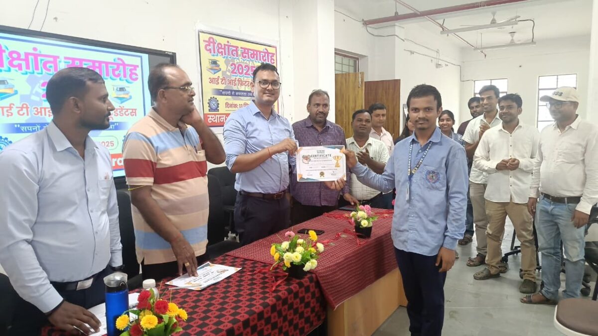 फारबिसगंज. फाइनल ईयर में ओवरऑल टॉपर बने इलेक्ट्रिशियन ब्रांच के प्रियांश राज व प्रथम वर्ष में ओवरऑल टॉपर फिटर ब्रांच के जय प्रकाश कुमार को प्राचार्य ने मेडल व प्रशस्ति पत्र प्रदान कर सम्मानित किया. साथ ही अपने-अपने व्यवसाय में शीर्ष स्थान प्राप्त करने वाले अन्य छात्रों को भी पुरस्कृत किया गया. कार्यक्रम का संचालन फिटर अनुदेशक सुनील कुमार ने किया. कार्यक्रम में मुख्य अनुदेशक विकास रंजन, चंद्रशेखर गुप्ता, कुमार अनूप, अनुदेशक संजय कुमार, सुनील कुमार, बालमुकुंद, निखिल कुमार, पूजा कुमारी, प्रतिभा कुमारी, अभिषेक कुमार, राजेश कुमार, हरेकृष्ण झा, सभी अनुदेशक, प्रथम व द्वितीय वर्ष के छात्र-छात्राएं मौजूद थे. र