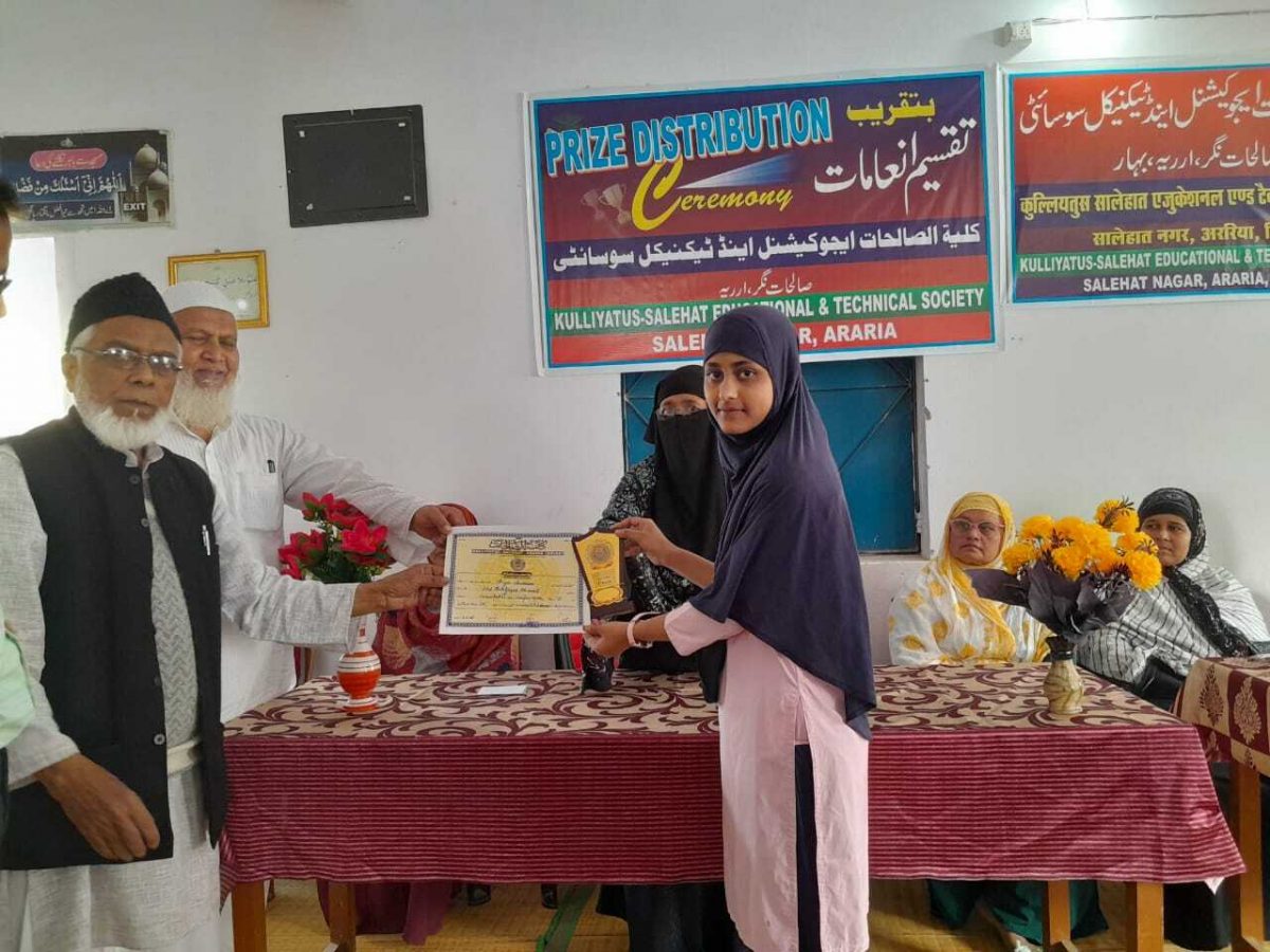 कुल्लियातुस सालेहात एजुकेशनल एंड टेक्निकल सोसाइटी सालेहात नगर अररिया द्वारा पिछले दिनों आयोजित विज्ञान दिवस के मौके पर आयोजित विभिन्न प्रदर्शनी में बेहतर प्रदर्शन करने वाली छात्राओं को पुरस्कृत किया गया.