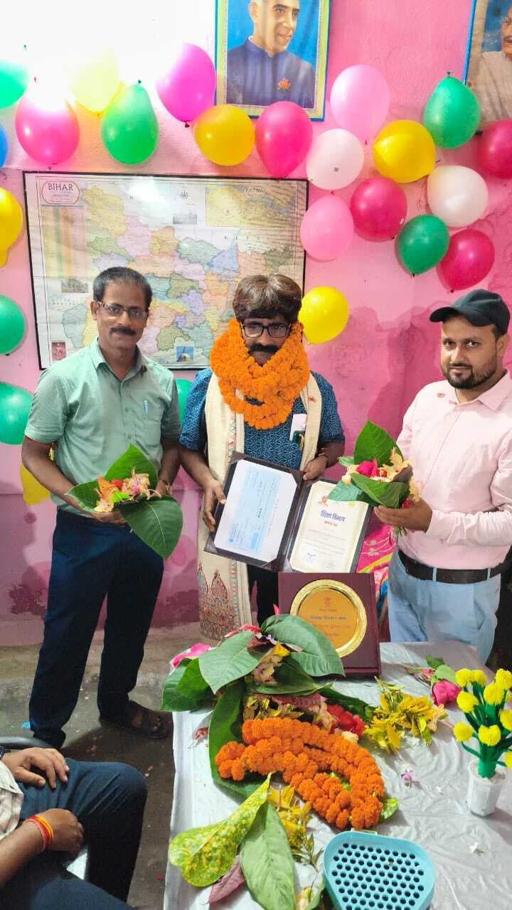 नरपतगंज. प्रखंड क्षेत्र के उच्च माध्यमिक विद्यालय नोनिया टोला चकला में एचएम रामकुमार दास की अध्यक्षता में समारोह आयोजित कर विज्ञान शिक्षक धीरज सिंह को सम्मानित किया गया. मालूम हो कि वर्ष 2025 में बिहार सरकार की ओर से राजकीय शिक्षक पुरस्कार प्राप्त हुआ. यह क्षण उनके लिए ही नहीं, बल्कि विद्यालय परिवार व पूरे क्षेत्र के लिए गर्व का अवसर बन गया. पुरस्कार प्राप्ति के बाद विद्यालय में उनका स्वागत जिस हृदय से किया गया. उसने पूरे वातावरण को भावुक व आनंदमय बना दिया. विद्यालय परिसर में यह दिन विशेष बन गया. जब एचएम रामकुमार दास ने पूरे शिक्षक परिवार व विद्यार्थियों के साथ मिलकर धीरज सिंह का भव्य स्वागत किया. विद्यालय में प्रवेश करते ही एचएम ने उन्हें फूलों का बुके व फूलों की मालाओं से सम्मानित किया. मौके पर एचएम रामकुमार दास, बुलेंद्र कुमार मंडल, रविंद्र नाथ झा ,अरविंद कुमार, गनौरी कुमार सिंह,चंदन कुमार दत्ता, गणेश कुमार, अमरकांत, विकास कुमार ,शशि भूषण कुमार, साकेत त्रिपाठी, अरविंद कुमार यादव, रामकुमार सिंह, सपना कुमारी, प्रेमवती कुमारी, रूबी कुमारी, रजनी कुमारी, बीवी जरीना खातून व अन्य शिक्षक मौजूद थे.