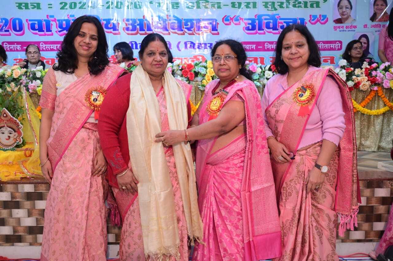 फारबिसगंज. अखिल भारतीय मारवाड़ी महिला समिति का 20 वां प्रांतीय अधिवेशन सीतामढ़ी में रंगारंग कार्यक्रमों के साथ संपन्न हुआ. इस प्रांतीय सम्मेलन में फारबिसगंज शाखा द्वारा बीते दो वर्षों के दौरान किये गये उत्कृष्ट कार्य व प्रदर्शन को लेकर 06 प्रांतीय पुरस्कारों से सम्मानित किया गया. अधिवेशन से लौटी फारबिसगंज शाखा की अध्यक्ष अनिता अग्रवाल व सचिव अंजू गोयल ने बताया कि इस अधिवेशन में फारबिसगंज शाखा के साथ-साथ जोगबनी, भागलपुर, मुंगेर, बेतिया, पूर्णिया, जयनगर, बेगूसराय, रक्सौल, पटना, दरभंगा, पटना सिटी, पुपरी, मोतिहारी, दरभंगा, खगड़िया, सुपौल, अररिया, बगहा, मुजफ्फरपुर, बखरी, कटिहार आदि शाखाओं की करीब 3 सौ से ज्यादा महिला प्रतिनिधि शामिल हुईं. अधिवेशन का शुभारंभ उड़ीसा के बालासर से आये राष्ट्रीय अध्यक्ष अंजू सरावगी, पूर्व राष्ट्रीय अध्यक्ष मीणा गुप्ता, प्रांतीय अध्यक्ष सुमन सर्राफ व अन्य अधिकारियों ने संयुक्त रूप से किया. सभी पदाधिकारी को भागलपुरी सिल्क दुपट्टा पहनाकर सम्मानित किया गया. सीतामढ़ी में सीता माता के उद्भव व अन्य दर्शनीय स्थलों की पूर्ण जानकारी दी गयी. सभी शाखा बहनों को उनके शाखा द्वारा किये गये कार्यो के लिये सम्मानित किया गया. बताया कि फारबिसगंज शाखा को उनके दो साल के कार्यकाल में उत्कृष्ट प्रदर्शन के लिए 06 पुरस्कारों से सम्मानित किया गया. अध्यक्ष अनीता अग्रवाल को उनके बेहतरीन दिशा निर्देश के लिए सर्वश्रेष्ठ शाखा अध्यक्ष घोषित किया गया. फारबिसगंज शाखा को सर्वश्रेष्ठ शाखा सम्मान प्रदान किया गया. उक्त जानकारी शाखा सचिव अंजु गोयल व कोषाध्यक्ष प्रीति अग्रवाल ने दी. इधर फारबिसगंज शाखा को उत्कृष्ट शाखा का सम्मान मिलने से संपूर्ण शाखा सदस्यों में काफी उत्साह व्याप्त है.