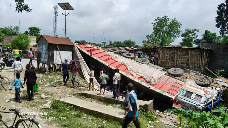 भरगामा. प्रखंड क्षेत्र के सुकेला मोड़ पर शनिवार की अहले सुबह एक बड़ा हादसा टल गया. सिलीगुड़ी से सहरसा जा रहा सीमेंट लदा ट्रक संख्या यूपी 52 टी 7272 सड़क पर आये एक कुत्ते को बचाने के क्रम में अनियंत्रित होकर पलट गया. यह घटना सुबह करीब 4:30 बजे हुई. प्रत्यक्षदर्शियों के अनुसार तेज रफ्तार में आ रहे ट्रक मोड़ पर कुत्ता को बचाने में नियंत्रण खो बैठा व सड़क किनारे स्थित सुरेश ठाकुर के सैलून को रौंदते हुए गहरी खाई में जा गिरा. चालक व सहचालक दोनों सुरक्षित बाहर निकल आये. स्थानीय ग्रामीणों ने बताया कि सुकेला मोड़ पर वक्रता अधिक होने के कारण पहले भी कई बार सड़क दुर्घटनाएं हो चुकी हैं. ग्रामीणों ने बताया कि पथ निर्माण विभाग ने मोड़ को सीधा करने के लिए वैकल्पिक सड़क निर्माण की योजना शुरू की थी. लेकिन वह अधूरी रह गयी. अगर वह सड़क समय पर पूरी कर चालू कर दी जाती तो इस तरह की दुर्घटनाओं से बचा जा सकता था. घटना की सूचना मिलते ही भरगामा पुलिस मौके पर पहुंची व घटनास्थल का मुआयना कर आवश्यक पूछताछ शुरू कर दी है.