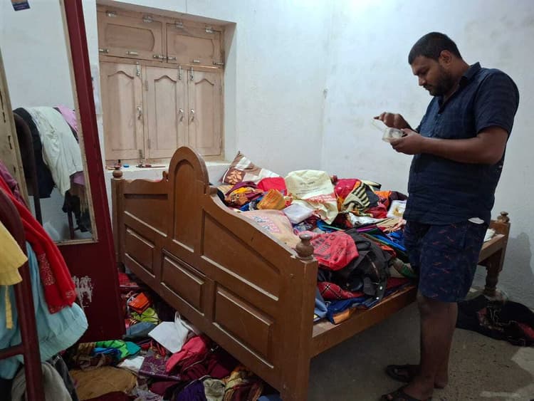फोटो:-9-चोरी हुए शिवपुरी स्थित घर का जायजा लेते समाजसेवी नन्हे प्रियदर्शी. प्रतिनिधि, अररिया नगर थाना क्षेत्र में इन दिनों पुनः चोरी की घटना में इजाफा हुआ है. अज्ञात चोरों का मनोबल एक बार पुनः चार माह के बाद से बुलंद है. चोर बंद घर का ताला तोड़कर व चदरा काटकर लाखों रुपये की चोरी की घटना को अंजाम दे रहे हैं. इसी क्रम में नगर थाना क्षेत्र के शिवपुरी वार्ड संख्या 09 स्थित बंद घरों से तीन नवंबर की रात में चोरों ने लाखों के गहने, जेवर व घर में रखे रुपये की चोरी कर ली है. दोनों घरों के पीड़ित गृह मालिक को अगले दिन सुबह 04 नवंबर को पड़ोसी से घर का ताला टूटा है कि जानकारी प्राप्त हुई. इसके बाद पीड़ित गृह मालिक ने नगर थाना में आवेदन देकर पुलिस से गुहार लगायी. आवेदन में शिवपुरी वार्ड संख्या 09 के एक पीड़ित निवासी सुभाष कुमार झा पिता देव किशोर झा ने बताया है कि दीपावली व काली पूजा में अपने गांव गये थे. इसी दौरान 04 नवंबर की सुबह पड़ोसी ने बताया कि उनके घर का ताला टूटा हुआ है. जब घर पहुंचे तो बिखरे सामानों की जांच की तो पाया कि 01 भरी सोने के विभिन्न गहने व 11 भरी चांदी के पायल की चोरी कर ली है. इधर दूसरे पीड़ित नीरज कुमार ने बताया है कि वह अपने सगे भाई पंकज कुमार के साथ शिवपुरी में अपने घर में रहते हैं. दीपावली पर्व पर सपरिवार अपने गांव गये थे. 04 नवंबर की 11 बजे सुबह में पड़ोसी से जानकारी मिली कि घर का ताला टूटा हुआ है. घर पहुंचकर जांच करने पर बंद अलमीरा से 10 भर सोने के जेवरात व 02 लाख रुपये नकद की चोरी कर ली है. दोनों पीड़ित ने नगर थाना में आवेदन देकर नगर थानाध्यक्ष मनीष कुमार रजक से घटनास्थल की की जांच करके चोरी हुए जेवरात व रुपये की बरामदगी की गुहार लगायी है. वहीं शिवपुरी स्थित दो घरों में हुई भीषण चोरी की जानकारी मिलते ही स्थानीय समाजसेवी नन्हे प्रियदर्शी ने घटनास्थल पहुंचकर जायजा लिया है. साथ ही शहर में चोरी की घटना में पुनः बढ़ोतरी पर इसकी निंदा की है. नगर थाना पुलिस से शिवपुरी वार्ड संख्या 09 स्थित शिवपुरी, कृष्णापुरी, भूदान सहित अन्य जगहों पर रात्रि गश्ती की मांग की है.