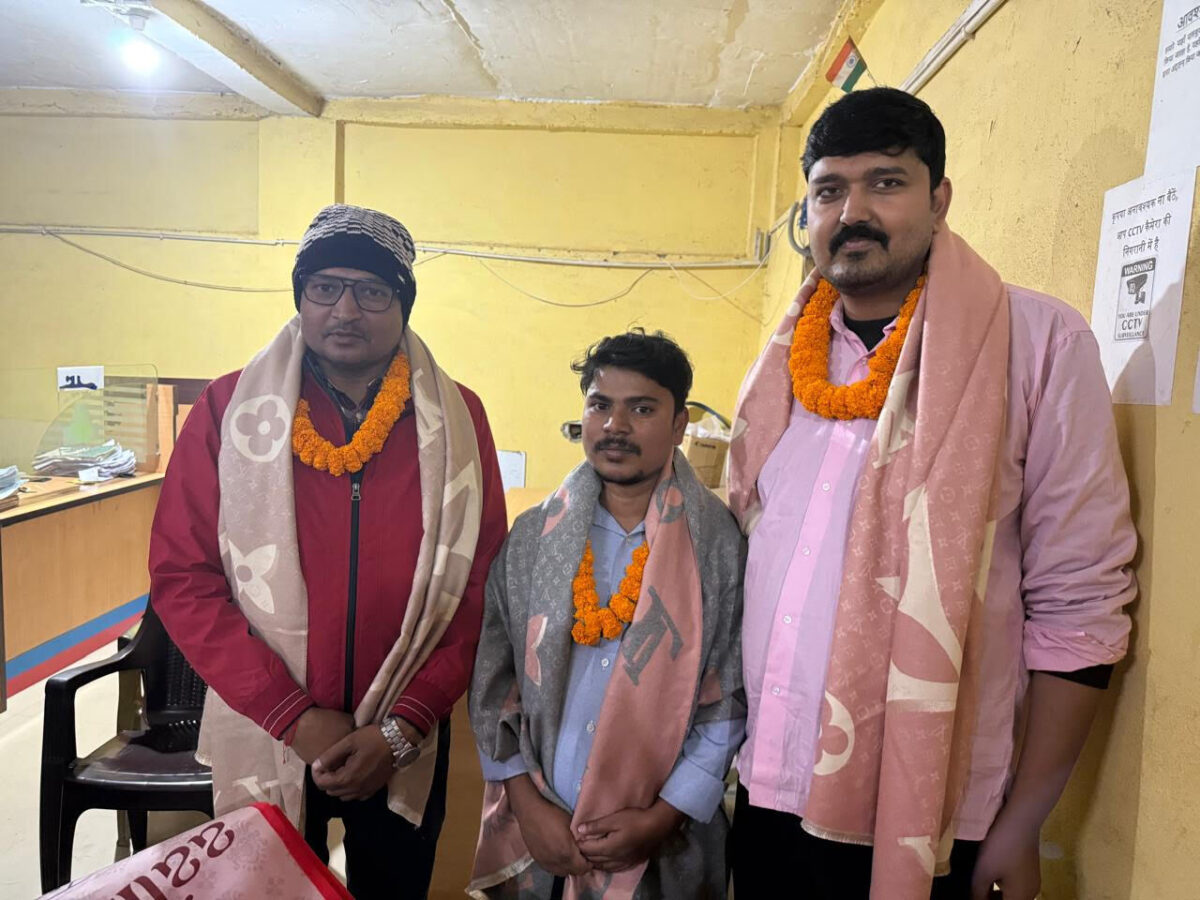 ताराबाड़ी. बिहार ग्रामीण बैंक पटेगना शाखा में शनिवार संध्या तीन कर्मियों की विदाई दी गयी. शाखा के तीन प्रमुख अधिकारी शाखा प्रबंधक रमण कुमार, सहायक शाखा प्रबंधक विक्रम कुमार, राघव कुमार राहुल का स्थानांतरण बैंक प्रबंधन द्वारा जारी आदेश के बाद प्रभावी हो गया है. इन अधिकारियों ने अपने कार्यकाल के दौरान शाखा की सेवा, ग्राहक सुविधा, वित्तीय अनुशासन व विभिन्न सरकारी योजनाओं के सफल संचालन में उल्लेखनीय योगदान दिया. स्थानीय ग्राहकों व्यावसायिक संगठनों व ग्रामीण क्षेत्र के लाभार्थियों ने इनके कार्यों की सराहना करते हुए इनके नए पदस्थापन पर शुभकामनाएं दी है. शाखा के कर्मचारियों ने बताया कि इन तीनों अधिकारियों ने टीम भावना पारदर्शिता व समयबद्ध सेवा के माध्यम से शाखा के कार्य निष्पादन को नई दिशा दी. वहीं बैंक मित्र मो वजैर अंसारी, मृत्युंजय पासवान, नीतीश कुमार पासवान, गोपाल कुमार साह ने बुके, अंग वस्त्र व माला पहनाकर सम्मानित किया. मौके पर पप्पू साह, ईश्वर भगत, अखिलेश कुमार साह आदि मौजूद थे.