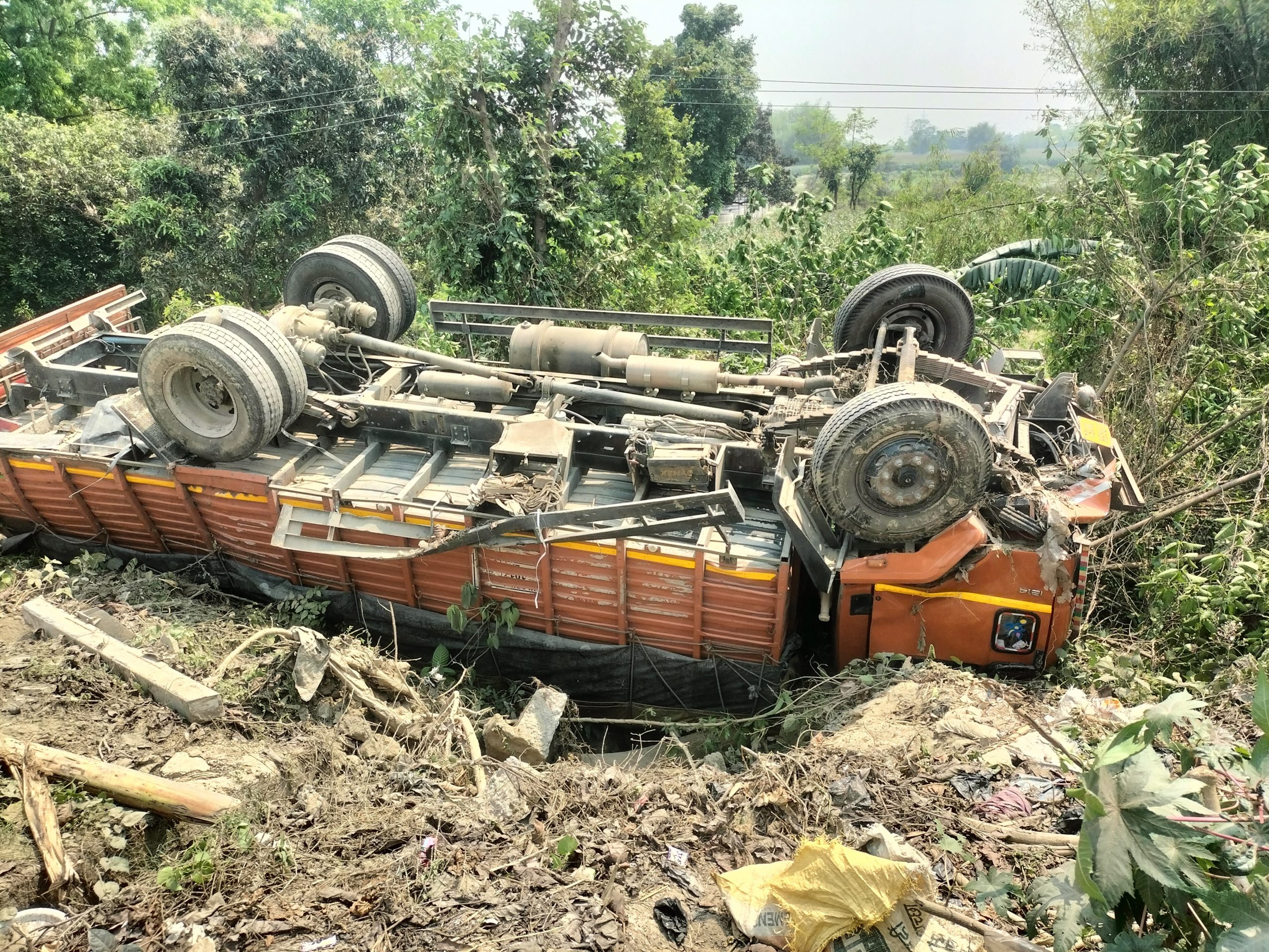 नरपतगंज. नरपतगंज-फारबिसगंज एनएच के गेरुवा नदी के समीप रविवार की सुबह तंबाकू लोड अनियंत्रित ट्रक गड्ढे में पलटी मार दिया. चालक ट्रक में फंसे रहे. जानकारी मिलते ही पहुंचे स्थानीय ग्रामीणों के द्वारा अथक प्रयास के बाद ट्रक से चालक को सुरक्षित बाहर निकाला गया. ग्रामीणों की सूचना पर पहुंचे नरपतगंज पुलिस ने घटनास्थल पर पहुंचकर जानकारी लिया. इसके बाद दुर्घटनाग्रस्त ट्रक को अपने कब्जे में ले लिया. चालक मुजफ्फरपुर के अकबरपुर निवासी मुकेश साहनी पिता जयप्रकाश साहनी बताया जा रहा है. बताया जा रहा है कि ट्रक संख्या यूपी 65 एचटी 8152 पर चालक के द्वारा खैनी लोड कर बंगाल से यूपी के बलिया जा रहा था. इसी बीच नरपतगंज फारबिसगंज एनएच के गेरुवा नदी के समीप ट्रक अनियंत्रित होकर गड्ढे में पलटी मार दिया.