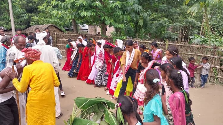 भरगामा. प्रखंड क्षेत्र के शंकरपुर गांव में धूमधाम व भक्ति भाव से कर्मा पूजा मनायी गयी. शंकरपुर गांव में सोमवार को कर्मा पूजा का आयोजन बहुत ही धूमधाम से किया गया. इस मौके पर गांव स्थित करम पेड़ के नीचे, पुजारी फिटकिरी उरांव ने पारंपरिक रीति रिवाज व विधि-विधान के साथ पूजा अर्चना संपन्न करायी. पूजा में दूर-दूर से आए आदिवासी समाज के साथ-साथ आसपास के स्थानीय लोग भी बड़ी संख्या में शामिल हुए. पूजा के समापन के बाद सभी उपस्थित लोगों के बीच प्रसाद का वितरण किया गया. इस अवसर पर पुजारी ने आदिवासी समाज को करमा पर्व का महत्व समझाने के लिए करमा पाठ सुनाया. छात्राओं ने किया पारंपरिक नृत्य वहीं छात्राओं ने इस पर्व से जुड़े पारंपरिक संगीत पर मनमोहक नृत्य प्रस्तुत किया. वहीं प्रखंड क्षेत्र के सिरसिया कला, सिमरबनी, कुसमौल, भवानीपुर, शंकरपुर समेत दर्जनों गांव के कई लोगों के घरों में करमा पूजा आयोजन किया गया है. मौके पर श्यामदेव उरांव, ज्ञान देवी, पाबो देवी,उमा देवी, धर्मेंद्र उरांव, मिथिलेश उरांव, धनीलाल उरांव, सोनेलाल उरांव सहित दर्जनों लोग मौजूद थे.