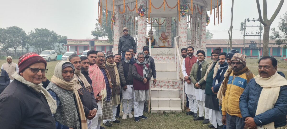 नरपतगंज. नरपतगंज मुख्यालय स्थित सरला सत्यनारायण यादव महाविद्यालय में शुक्रवार को बिहार सरकार के पूर्व मंत्री स्व सत्यनारायण यादव की 33वीं पुण्यतिथि पर उनकी प्रतिमा पर पुष्प अर्पित कर उन्हें श्रद्धांजलि दी. इस मौके पर उनकी याद में एक समारोह का आयोजन किया गया. मौके पर पूर्व विधायक दयानंद यादव ने उनके जीवन पर चर्चा करते हुए बताया कि वह 1967 से लेकर 77 तक नरपतगंज विधानसभा क्षेत्र का प्रतिनिधित्व किया. नहरों का निर्माण करवाने में उनकी अहम भूमिका रही. वह हमेशा समाज की अंतिम पंक्ति के लाचार व गरीब लोगों की मदद में जुटे रहे. उन्होंने कहा कि उनके बताए आदर्शों पर आज के युवाओं को चलने की जरूरत है. वहीं कार्यक्रम में वक्ताओं ने उनके जीवन काल पर चर्चा की. कार्यक्रम की अध्यक्षता जयनंदन यादव व मंच का संचालन प्राचार्य प्रो मोकीम आलम ने किया. मौके पर विधायक देवयंती यादव, पूर्व विधायक दयानंद यादव, प्रखंड प्रमुख मनोज यादव, विश्वमोहन कुमार, रमेशचंद्र यादव, ई बबलू यादव, मनीष यादव, धनंजय यादव, जिप सदस्य सत्यनारायण यादव, पूर्व प्रमुख विजय यादव, ननकी यादव, इंद्रानंद पासवान, अशोक प्रिंस, अनंत राय, जेडी यादव,आयुष अग्रवाल सहित बड़ी संख्या में लोग मौजूद थे.