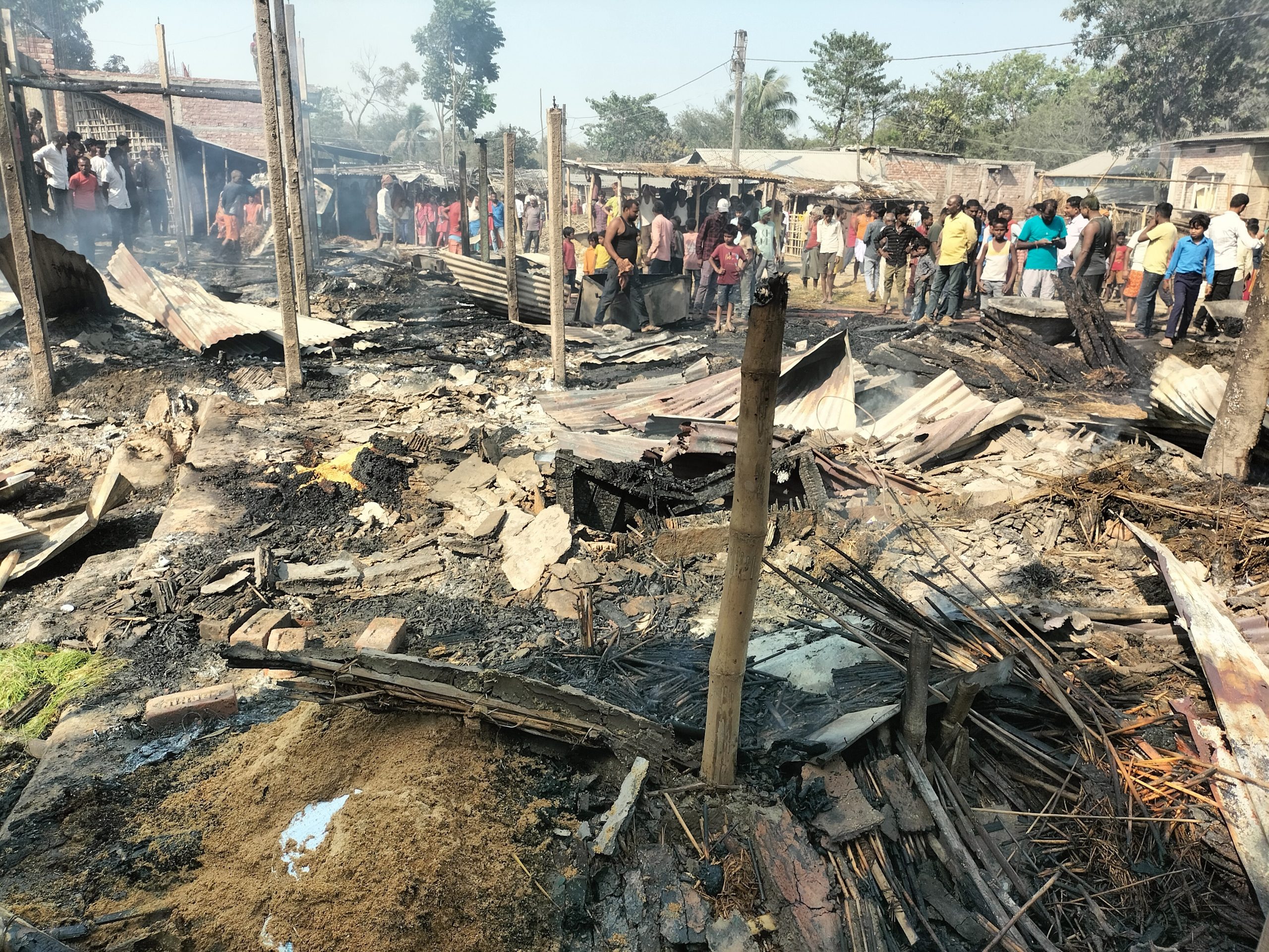 -8-प्रतिनिधि, नरपतगंज प्रखंड क्षेत्र के नाथपुर पंचायत के वार्ड संख्या 8 में सोमवार दोपहर आग से आधा दर्जन परिवारों के दो दर्जन घर जल गये. स्थानीय ग्रामीणों ने चापाकल व पंप सेट की मदद से आग पर काबू पाना चाहा. लेकिन आग बेकाबू देखकर ग्रामीणों के द्वारा नरपतगंज पुलिस को सूचना दी. सूचना पर पहुंचे नरपतगंज थाना व फारबिसगंज थाना से पहुंचे अग्निशामक टीम ने पहुंच कर अथक प्रयास के बाद आग पर काबू पाया गया. तब तक दो दर्जन घर जल गये. घर में रखे अनाज ,वस्त्र, नकद, जेवरात, दो बाइक सहित लगभग 25 लाख रुपये की संपत्ति जलने का अनुमान लगाया जा रहा है. पीड़ित परिवारों में नाथपुर पंचायत के वार्ड संख्या 08 निवासी लक्ष्मण राय पिता स्व वासुदेव राय, नीरज कुमार राय पिता स्व कपिलेश्वर राय, शिवनारायण राय पिता वासुदेव राय, सूरज राय पिता लक्ष्मण राय, धीरज राय पिता लक्ष्मण राय, जगन राय पिता देवदास राय शामिल हैं. वहीं सूचना पर पहुंचे मुखिया जयनारायण राय, सरपंच दिलीप राय, पैक्स अध्यक्ष मनोज यादव, पंसस संतोष यादव आदि ने घटनास्थल पर पहुंचकर पीड़ित परिवार को सांत्वना दिया. वहीं पीड़ित परिवार को मुआवजा को लेकर अंचल पदाधिकारी को फोन कर जानकारी दी गयी. मामले को लेकर अंचल पदाधिकारी रविंद्र कुमार ने बताया कि संबंधित राजस्व कर्मचारी को रिपोर्ट के लिए भेजा गया है. रिपोर्ट मिलते ही पीड़ित परिवार के बीच मुआवजे की राशि उपलब्ध करवाया जायेगा.