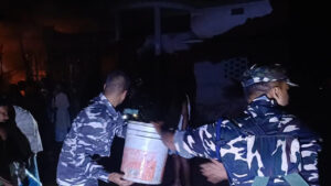 कुर्साकांटा. प्रखंड क्षेत्र के लैलोखर के गरैया वार्ड संख्या 13 में गुरुवार की रात्रि आग लगने से दो घर जल गये. जिसमें घर में रखे अनाज, कपड़ा, बर्तन जल गये. अगलगी पीड़ित मो शहाबुद्दीन व मो दाऊद ने बताया कि आग की सूचना एसएसबी 52वीं बीओपी लैलोखर, भलूआ सहित कुआड़ी थाना को दी गयी. सूचना मिलते ही एसएसबी 52 वीं बीओपी लैलोखर के सहायक कमांडेंट मोहित भार्गव, बी कंपनी बीओपी कुआड़ी इंस्पेक्टर अपने सदल-बल के साथ घटना स्थल पहुंचकर काफी मशक्कत के बाद आग पर काबू पाया. अगलगी पीड़ित मो शहाबुद्दीन व मो दाऊद ने बताया कि अगलगी में लगभग एक लाख की क्षति का अनुमान है.