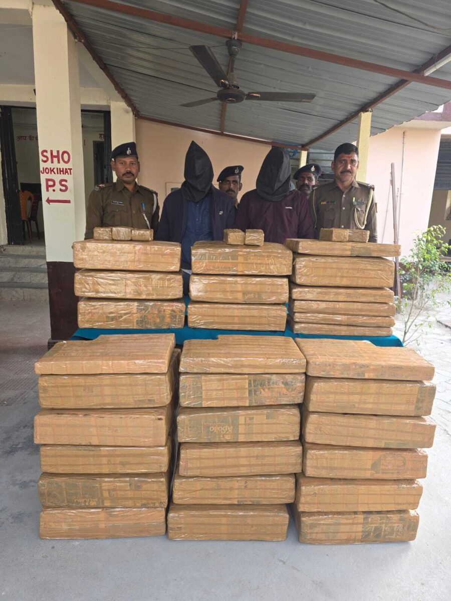 जोकीहाट. गुप्त सूचना के आधार पर हाइवे 327 ई सिलीगुड़ी बहादुरगंज अररिया पथ पर काकन चौक से एक पिकअप वैन से भारी मात्रा में गांजा जब्त करने में जोकीहाट पुलिस ने सफलता पायी है. पुलिस को चकमा देकर भाग रहे दो तस्करों को पुलिस ने गिरफ्तार कर लिया है. जोकीहाट थानाध्यक्ष राजीव कुमार झा ने बताया कि पिकअप वैन से जब्त गांजा की मात्रा 280 किलो 680 ग्राम है. गिरफ्तार तस्करों में विष्णु पाठक, पिता दीनानाथ पाठक, ग्राम पिरसिंघीपुर, थाना रोहनिया, जिला वाराणसी दूसरा तस्कर तेज बहादुर, पिता शिवकरण, ग्राम सरायविरण, थाना कूड़ेमार, जिला सुल्तानपुर, दोनों उत्तर प्रदेश का निवासी है. थानाध्यक्ष ने बताया कि गांजा गुवाहाटी से लोड कर उत्तर प्रदेश जा रहा था. गांजा 10 किलो, 11 किलो आदि के अलग अलग पैकेट में बंद था. पुलिस अधिकारियों व जवानों ने जब गहन छानबीन की तो पिकअप वाहन के नीचले भाग में बने तहखाने में छिपाकर गांजा रखा था. पकड़े गए दोनों तस्करों ने जब पुलिस पदाधिकारी के निर्देश पर पिक अप के निचले भाग को खोला तो उसमें कुल 20 अलग अलग पैकेट में गांजा रखा पाया गया. पुलिस ने गांजा लदा वाहन संख्या डबल्यूबी 67 सी 1387 को जब्त कर लिया. साथ ही उक्त दोनों तस्करों को आवश्यक पूछताछ के बाद गुरुवार को न्यायालय को सौंप दिया. गिरफ्तार तस्करों ने पुलिस को चौकाने वाली बातें कही है. गौरतलब है कि बंगाल से निकटता के कारण नेशनल हाईवे 327 ई सिलीगुड़ी, बहादुरगंज अररिया पथ पर मादक पदार्थों का तस्कर लगातार सक्रिय है. तस्करों द्वारा विदेशी शराब व गांजा तस्करी के नये नये तरकीब से ढुलाई में जुटे हैं. लेकिन हाईवे पर सक्रिय जोकीहाट पुलिस इन तस्करों के मंसूबे पर पानी फेरने में कोई कोर कसर नहीं छोड़ रहे हैं. गांजा जब्ती को पुलिस बड़ी उपलब्धि मान रही है. गांजा जब्ती में थानाध्यक्ष राजीव कुमार झा, सअनि आशीष आनंद के अतिरिक्त पुलिस जवानों मौजूद थे.