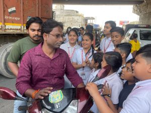 दर्जनों स्कूली बच्चों ने जागरूकता अभियान में लिया भाग :-7- प्रतिनिधि, अररिया जिले में बढ़ते सड़क हादसों को देखते हुए एसपी अंजनी कुमार के निर्देश पर शनिवार को यातायात थानाध्यक्ष के नेतृत्व में अनूठा यातायात जागरूकता अभियान चलाया गया. सबसे खास बात यह देखी गयी कि इस अनूठे पहल में निजी विद्यालय के दर्जनों छात्र-छात्राओं ने सक्रिय भागीदारी निभायी. यह अभियान अररिया शहर के बस स्टैंड स्थित फ्लाई ओवरब्रिज के नीचे आयोजित की गयी. जहां बड़ी संख्या में लोग रोजाना आवागमन करते हैं. साथ ही यह स्थान शहर को दूसरे जिले व अन्य स्थान से जोड़ने का मुख्य मार्ग है. शनिवार की सुबह 11 बजे से शुरू हुए इस अभियान में यातायात थानाध्यक्ष अरविंद कुमार ने स्कूली बच्चों के साथ मिलकर बिना हेलमेट के बाइक चलाने वाले व बिना सीट बेल्ट लगाये चार पहिया वाहन चालकों को रोका. मौजूद छात्र-छात्राओं ने न केवल उन्हें यातायात नियमों का पाठ पढ़ाया. बल्कि उन्हें यातायात के नियमों को बताते हुए अनुपालन करने की सिख देते हुए सलाह भी दी. साथ ही सड़क सुरक्षा के महत्व को भी समझाया. स्कूली बच्चों ने वाहन चालकों को संदेश दिया कि “हेलमेट पहनो, जिंदगी बचाओ” व “सीट बेल्ट लगाओ, सुरक्षित घर जाओ”. इस दौरान कई चालकों ने अपनी गलती स्वीकारी व भविष्य में यातायात नियमों का पालन करने की बातें कही. वहीं मौजूद यातायात थानाध्यक्ष अरविंद कुमार ने बताया कि इस अभियान का उद्देश्य वाहन चालकों को हेलमेट पहनने व सीट बेल्ट लगाने के प्रति जागरूक करते हुए प्रेरित करना है. आजकल की युवा पीढ़ी को सड़क सुरक्षा के प्रति जागरूक करना बेहद जरूरी है. क्योंकि वे भविष्य के जिम्मेदार नागरिक हैं व देश के भविष्य हैं. इस अभियान में शामिल छात्र-छात्राओं में अतीफ, अतीब, हार्दिक, अतुफा, आदिति, अनग, ईशान, वेदानी व हेमी ने कहा कि हमने आज लोगों को समझाया है कि यातायात नियमों का पालन न करना सिर्फ उनकी नहीं, बल्कि दूसरों की जिंदगी को भी खतरे में डालना है. राह चलते राहगीर व स्थानीय दुकानदारों ने इस पहल की काफी सराहना की. साथ ही उम्मीद जताया कि ऐसे आयोजन से भविष्य में सड़क दुर्घटना के मामलों में कमी आयेगी. लोगों ने जिला पुलिस बल व स्कूली बच्चों का धन्यवाद किया. मौके पर यातायात थाना से पुअनि बसवन राम, सार्जेंट विजय कुमार भारती, हवलदार अजय कुमार साहित्य सहित अन्य यातायात पुलिसकर्मी मौजूद थे.