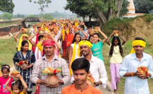 गोवर्धन पूजा के अवसर पर भगवान श्रीकृष्ण की प्रतिमा स्थापित, निकाली गयी जलभरी यात्रा