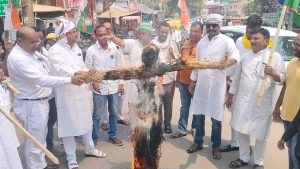 सोनिया-राहुल के खिलाफ चार्जशीट दाखिल करने पर पीएम का पुतला दहन