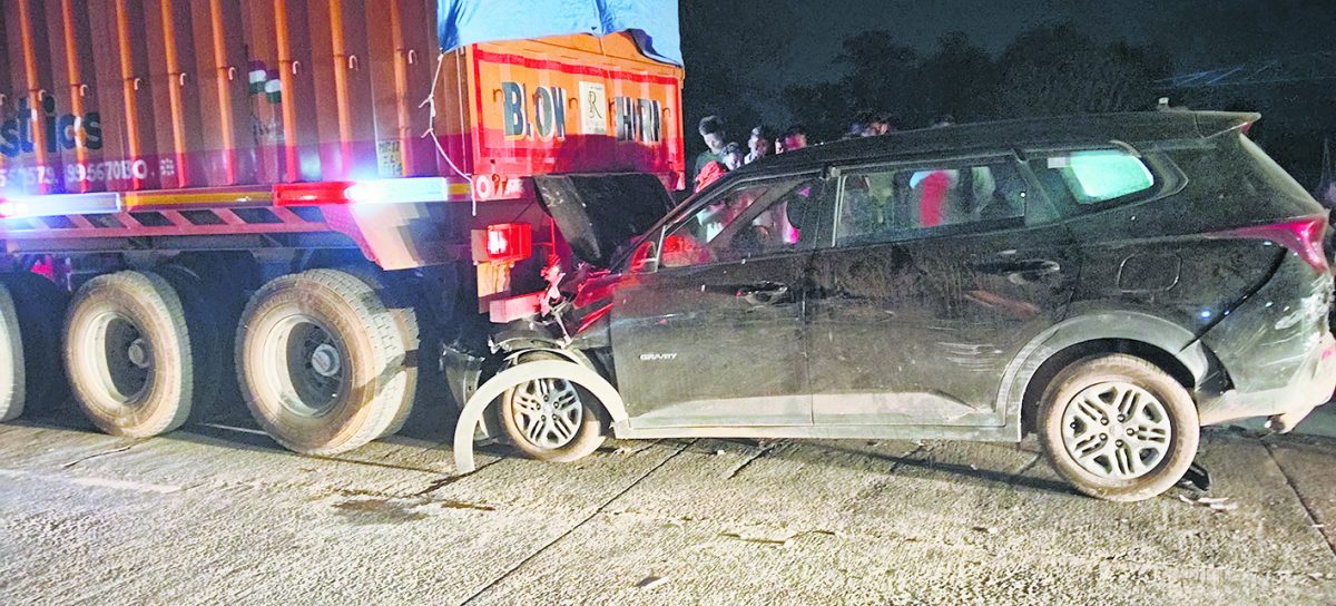 कंटेनर में पीछे से घुसी कार और कार को बोलेरो ने ठोका