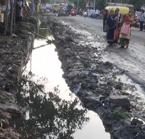 स्टेट हाइवे के किनारे खोदे गये कच्चे नाले से लोगों को भारी परेशानी