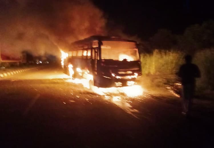 बिहिया. आरा-बक्सर एनएच 922 पर बिहिया थाना क्षेत्र के अमराई नवादा गांव के समीप मंगलवार की देर शाम तेज रफ्तार बस की टक्कर से बाइक सवार एक युवक की जहां मौके पर ही मौत हो गयी, वहीं दो अन्य युवक गंभीर रूप से जख्मी हो गये. घटना के बाद मौके पर पहुंची पुलिस की 112 नंबर गाड़ी पर सवार पुलिसकर्मियों ने जख्मी लोगों को बिहिया स्थित सामुदायिक स्वास्थ्य केंद्र पहुंचाया, जहां प्राथमिक उपचार के बाद दोनों की गंभीर अवस्था को देखते हुए सदर अस्पताल आरा रेफर कर दिया गया. मृतक युवक की पहचान अमराई नवादा गांव निवासी राजनारायण सिंह के पुत्र सन्नी सिंह (18 वर्ष) के रूप में की गयी है. इस हादसे में जख्मी युवकों में मृतक के भाई गौतम कुमार एवं अमराई नवादा गांव निवासी शम्भु सिंह के पुत्र रितेश कुमार शामिल हैं. घटना के बाद गुस्साये लोगों ने बस को आग के हवाले कर दिया. इसके बाद बस धू-धू कर जल गयी. आक्रोशित लोगों ने शव के साथ सड़क को जाम कर दिया, जिसके कारण हाइवे पर दोनों तरफ वाहनों की लंबी कतारें लग गयीं. इस दौरान लोगों द्वारा घटना का वीडियो बनाने वालों को पीटे जाने की भी बात बतायी जा रही है. सड़क जाम कर रहे लोग वरीय अधिकारियों के घटनास्थल पर आने, मृतक के परिजनों को तत्काल मुआवजा देने व बस चालक के खिलाफ अविलंब कार्रवाई करने की मांग कर रहे थे. इस बीच मामले की सूचना पाकर बिहिया, जगदीशपुर, शाहपुर, बहोरनपुर थाना व गंजराजगंज ओपी की पुलिस दल-बल के साथ मौके पर पहुंची और लोगों को समझाने-बुझाने का प्रयास किया, पर लोग वरीय पदाधिकारियों से बात करने की मांग पर अड़े रहे. इसी दौरान जगदीशपुर से दमकल वाहन के अलावा बिहिया, बहोरनपुर व अन्य जगहों से दमकल की एक बड़ी गाड़ी और चार छोटे वाहन मौके पर पहुंचे और धू-धू कर जल रही बस की आग को भारी मशक्कत के बाद बुझाया. हालांकि घटना में बस पूरी तरह से जल चुकी थी. घटना के लगभग दो घंटे के बाद जगदीशपुर एसडीएम संजीत कुमार व एसडीपीओ राजीव चंद्र सिंह ने मौके पर पहुंच कर लोगों से बातचीत कर उन्हें समझाया तथा जल्द ही मुआवजा देने व अन्य मांगों को मानने की बात कही जिसके बाद लोगों ने जाम हटाया. जाम हटने के बाद पदाधिकारियों की मौजूदगी में शव को पोस्टमार्टम के लिए सदर अस्पताल आरा भेजा गया. लगभग दो घंटों तक हाइवे जाम रहने के बाद यातायात सामान्य हो पाया.